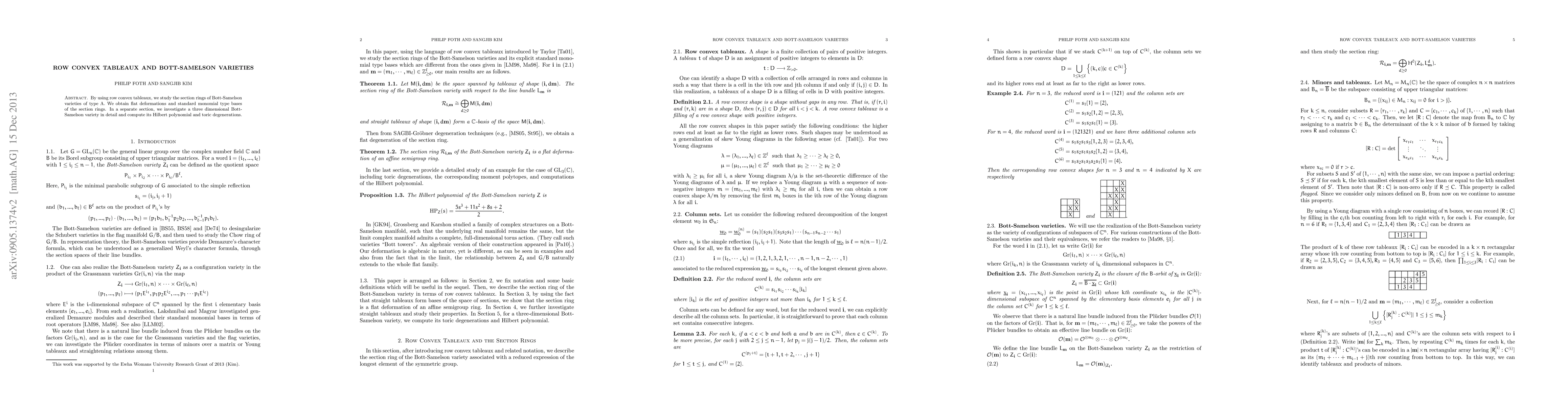 This paper employs row convex tableaux to analyze section rings of Bott-Samelson varieties, providing flat deformations and standard monomial bases. It also thoroughly examines a three-dimensional Bott-Samelson variety, determining its Hilbert polynomial and toric degenerations.