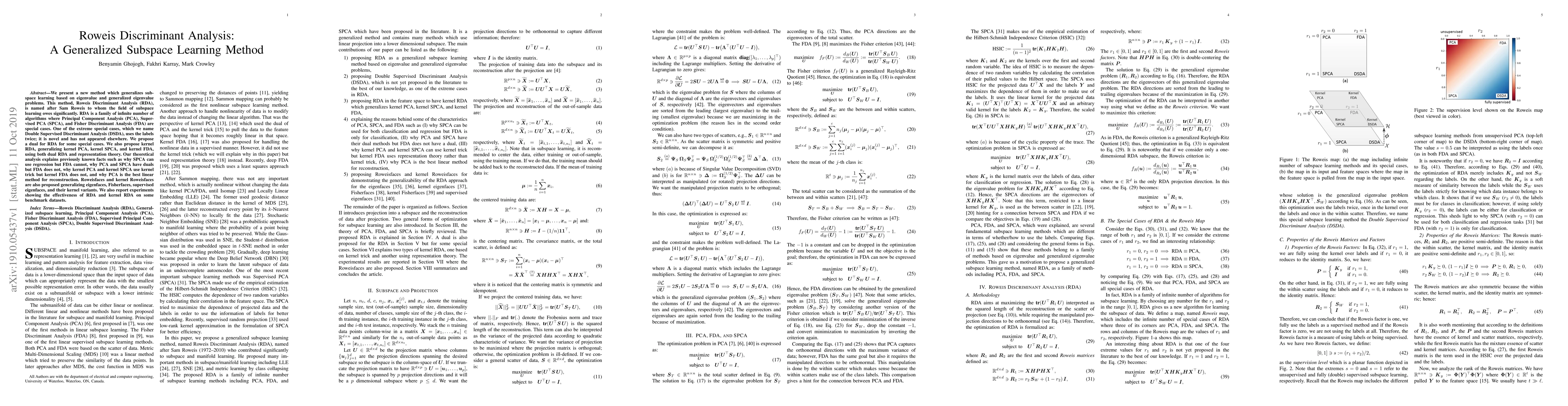 This paper introduces Roweis Discriminant Analysis (RDA), a generalized subspace learning method that encompasses PCA, Supervised PCA, and Fisher Discriminant Analysis as special cases. It also proposes novel extensions like Double Supervised Discriminant Analysis and kernel RDA, supported by theoretical analysis and experimental validation on benchmark datasets.