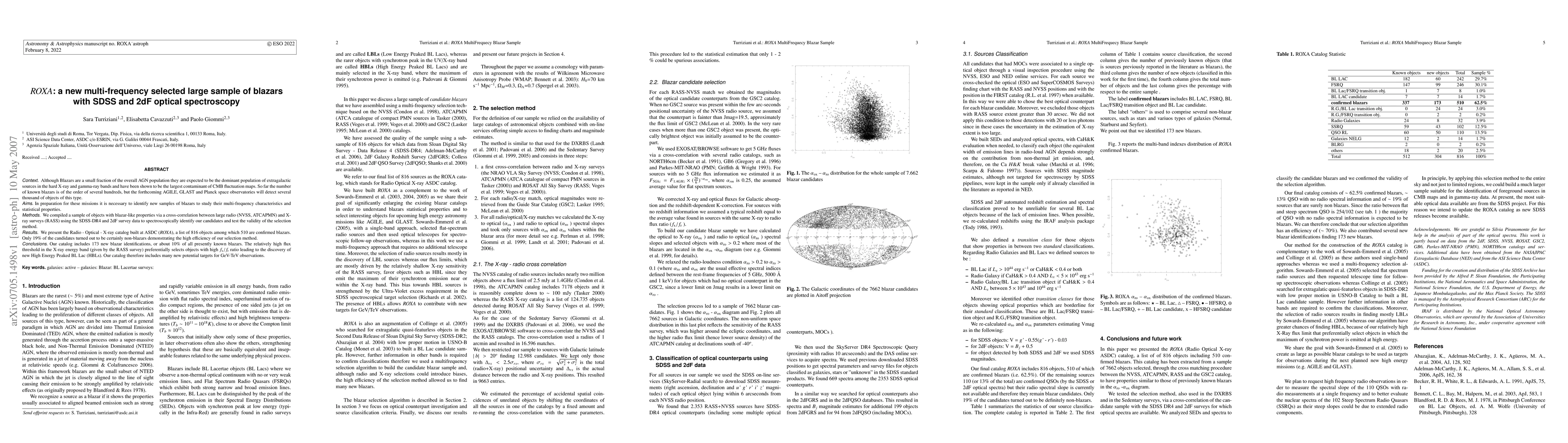 The research presents ROXA, a catalog of 816 blazar candidates identified through a cross-correlation of radio and X-ray surveys, confirmed by SDSS-DR4 and 2dF spectroscopy. The catalog, including 173 new blazar discoveries, efficiently selects high fx/fr ratio objects, enriching the sample with new High Energy Peaked BL Lac (HBLs) for GeV-TeV observations.