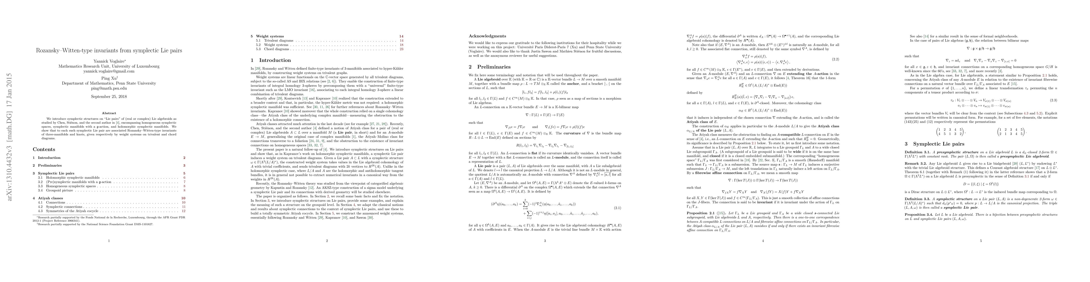 We introduce symplectic structures on "Lie pairs" of (real or complex) algebroids as studied by Chen, Stienon and the second author (From Atiyah classes to homotopy Leibniz algebras, arXiv:1204.1075), encompassing homogeneous symplectic spaces, symplectic manifolds with a $\mathfrak g$-action and holomorphic symplectic manifolds. We show that to each such symplectic Lie pair are associated Rozansky-Witten-type invariants of three-manifolds and knots, given respectively by weight systems on trivalent and chord diagrams.