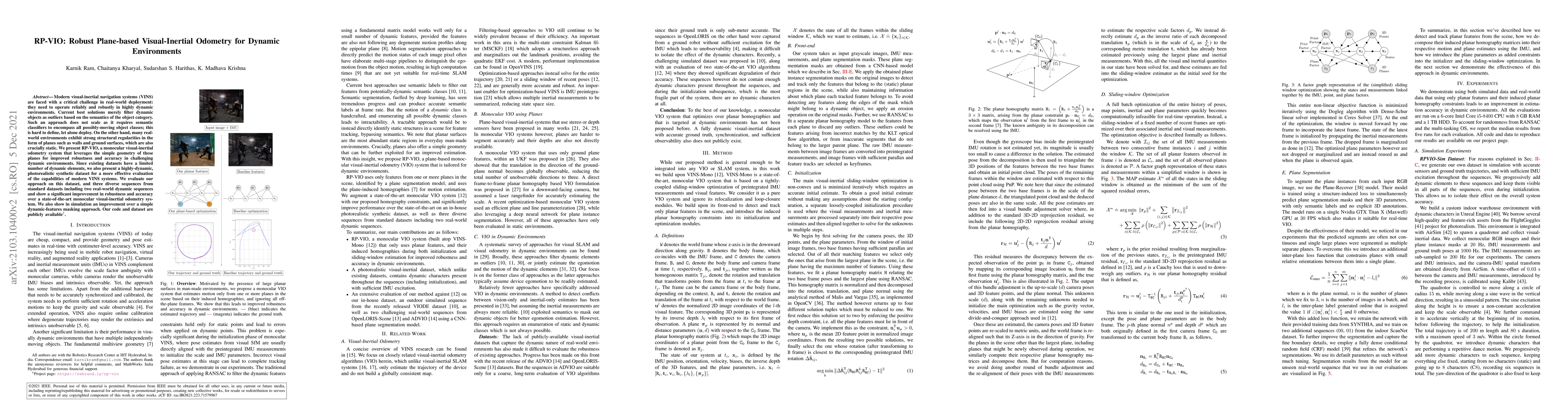 RP-VIO leverages plane geometry for robust monocular visual-inertial odometry in dynamic environments, outperforming existing methods by filtering dynamic objects based on structural regularities rather than object semantics. The approach is evaluated on a synthetic dataset and real-world sequences, demonstrating significant improvements in accuracy and robustness.