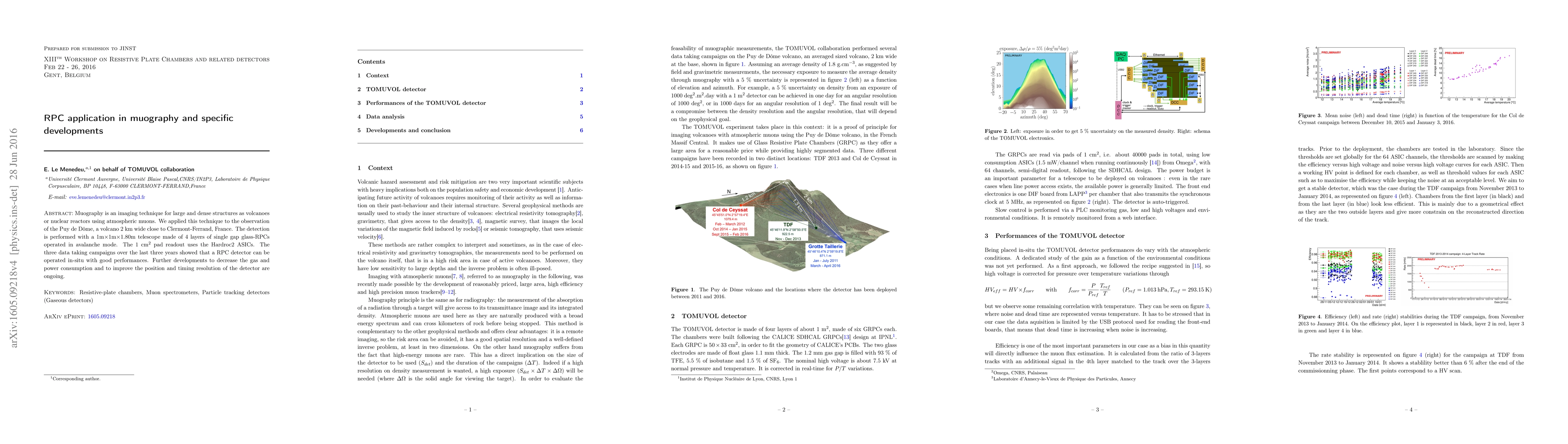 Researchers successfully deployed a muography detector at Puy de D extcircled{ome} volcano using RPC technology, demonstrating its potential for in-situ operation with good performances. Further developments aim to improve the detector's efficiency and precision.