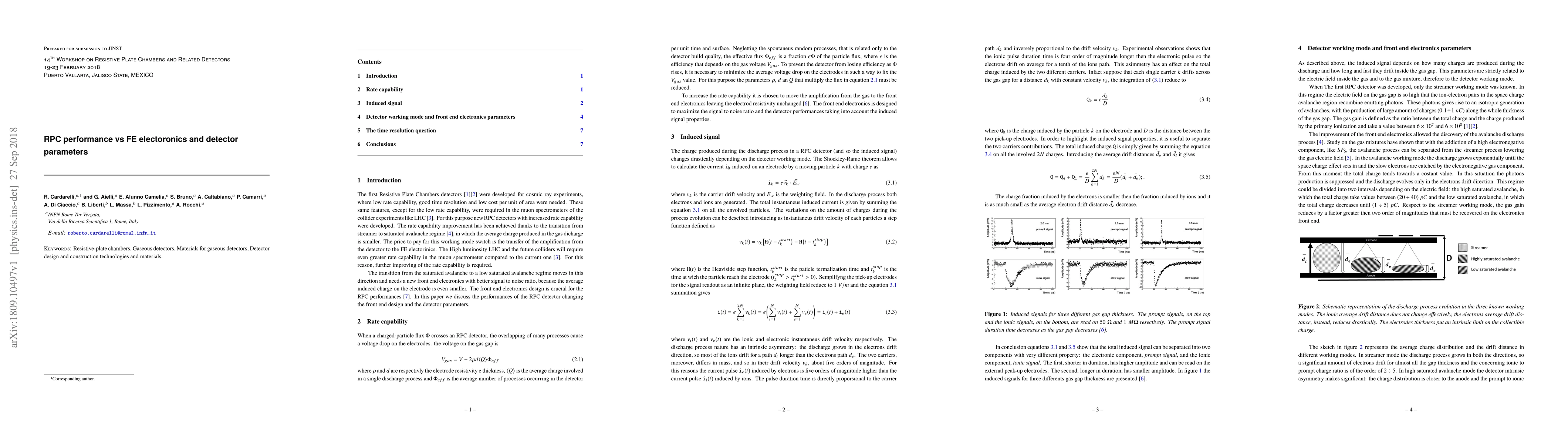 The first Resistive Plate Chambers detectors were developed for cosmic ray experiments, where low rate capability, good time resolution and low cost per unit of area were needed. These same features, except for the low rate capability, were required in the muon spectrometers of the collider experiments like LHC. For this purpose newRPCdetectors with increased rate capability were developed. The rate capability improvement has been achieved thanks to the transition from streamer to saturated avalanche regime, in which the average charge produced in the gas dicharge is smaller. The price to pay for this working mode switch is the transfer of the amplification from the detector to the FE electorinics. The High luminosity LHC and the future colliders will require even greater rate capability in the muon spectrometer compared to the current one. For this reason, further improving of the rate capability is required. The transition from the saturated avalanche to a low saturated avalanche regime moves in this direction and needs a new front end electronics with better signal to noise ratio, because the average induced charge on the electrode is even smaller. The front end electronics design is crucial for the RPC performances. In this paper we discuss the performances of the RPC detector changing the front end design and the detector parameters.