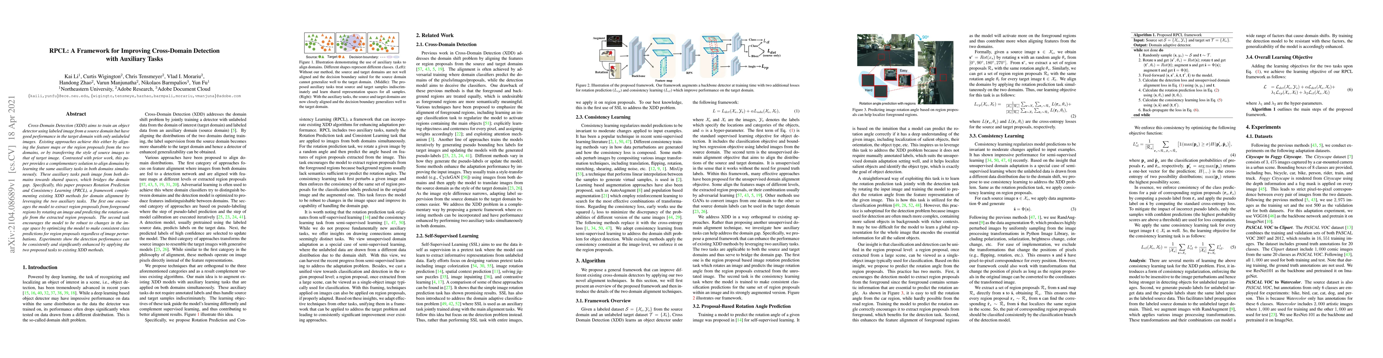 A new framework called RPCL improves cross-domain detection by learning auxiliary tasks that bridge the domain gap between source and target images. These tasks enhance detection performance significantly when applied to existing methods.