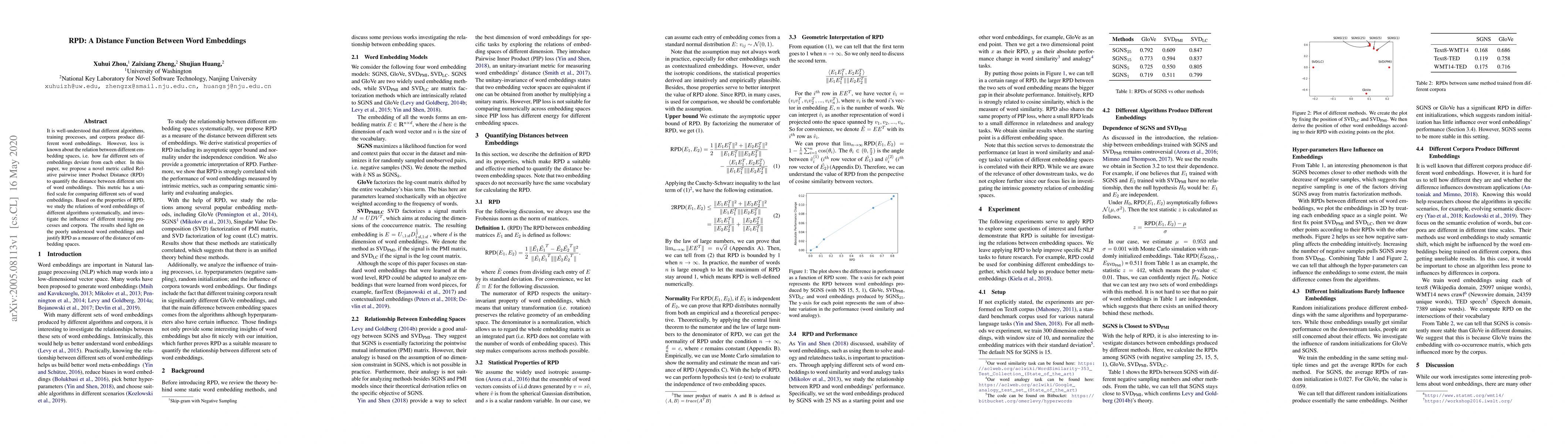 This paper introduces the Relative pairwise inner Product Distance (RPD) metric to quantify the distance between different sets of word embeddings, providing a unified scale for comparison. The study systematically investigates the relationships between embeddings from various algorithms and the influence of different training processes and corpora, offering insights into the often misunderstood domain of word embeddings.