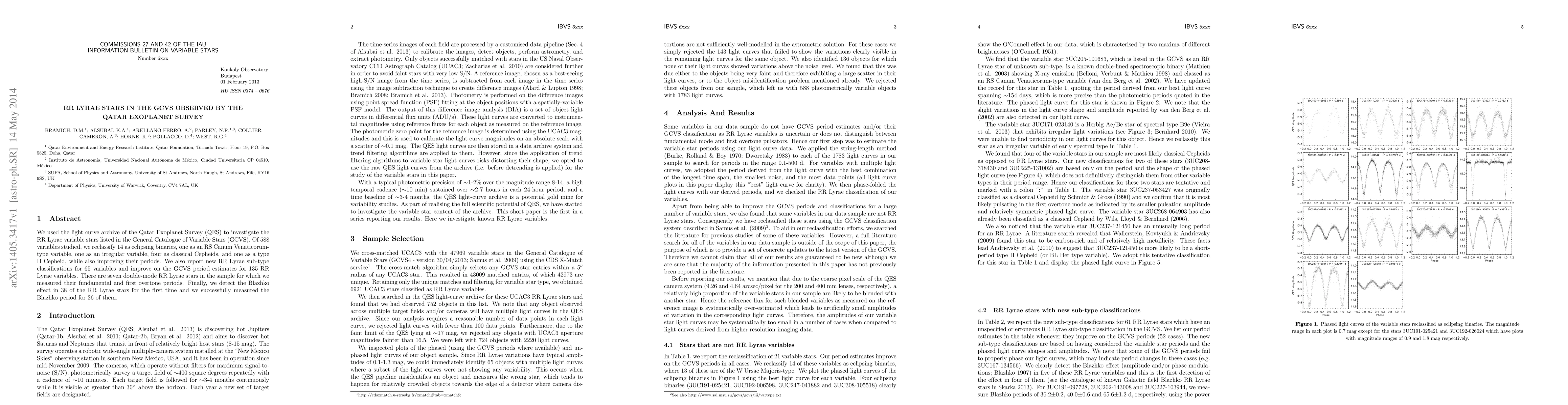 This study analyzes RR Lyrae stars from the Qatar Exoplanet Survey's light curve archive, reclassifying several variables and improving period estimates for 135 RR Lyrae stars. It also identifies the Blazhko effect in 38 stars for the first time.