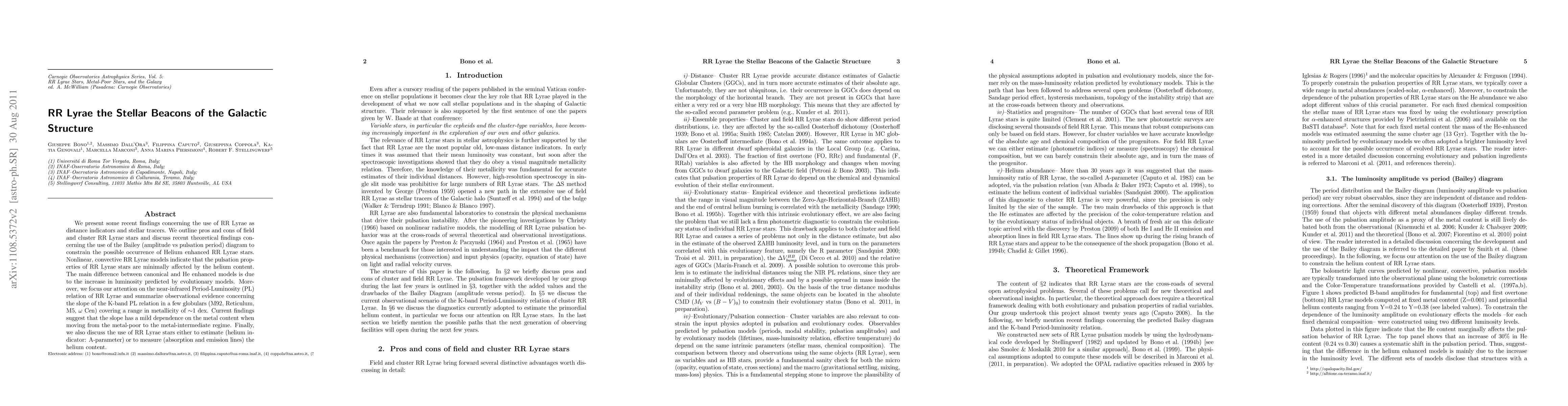 We present some recent findings concerning the use of RR Lyrae as distance indicators and stellar tracers. We outline pros and cons of field and cluster RR Lyrae stars and discuss recent theoretical findings concerning the use of the Bailey (amplitude vs pulsation period) diagram to constrain the possible occurrence of Helium enhanced RR Lyrae stars. Nonlinear, convective RR Lyrae models indicate that the pulsation properties of RR Lyrae stars are minimally affected by the helium content. The main difference between canonical and He enhanced models is due to the increase in luminosity predicted by evolutionary models. Moreover, we focus our attention on the near-infrared Period-Luminosity (PL) relation of RR Lyrae and summarize observational evidence concerning the slope of the K-band PL relation in a few globulars (M92, Reticulum, M5, Omega Cen) covering a range in metallicity of ~1 dex. Current findings suggest that the slope has a mild dependence on the metal content when moving from the metal-poor to the metal-intermediate regime. Finally, we also discuss the use of RR Lyrae stars either to estimate (helium indicator: A-parameter) or to measure (absorption and emission lines) the helium content.