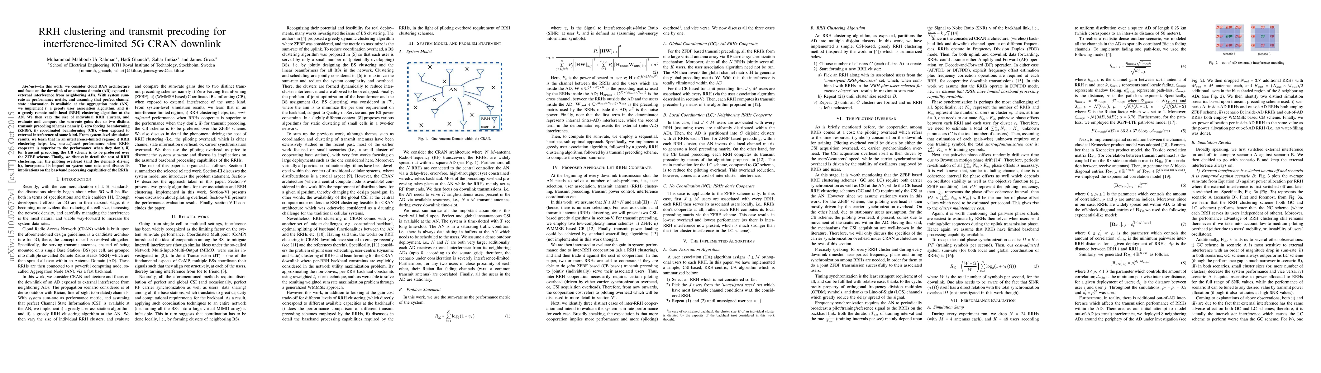 This paper explores RRH clustering and transmit precoding strategies in a 5G C-RAN architecture to enhance downlink performance under interference. It finds that RRH clustering and coordinated beamforming outperform standalone RRHs and zero forcing beamforming, respectively, while discussing the associated piloting overhead and its impact on system performance.