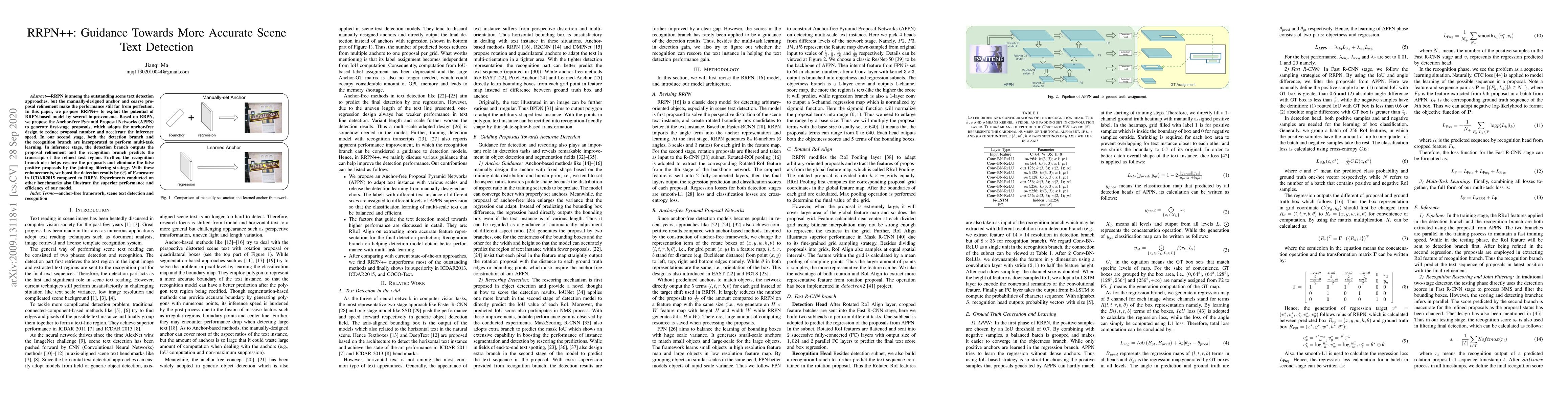 RRPN is among the outstanding scene text detection approaches, but the manually-designed anchor and coarse proposal refinement make the performance still far from perfection. In this paper, we propose RRPN++ to exploit the potential of RRPN-based model by several improvements. Based on RRPN, we propose the Anchor-free Pyramid Proposal Networks (APPN) to generate first-stage proposals, which adopts the anchor-free design to reduce proposal number and accelerate the inference speed. In our second stage, both the detection branch and the recognition branch are incorporated to perform multi-task learning. In inference stage, the detection branch outputs the proposal refinement and the recognition branch predicts the transcript of the refined text region. Further, the recognition branch also helps rescore the proposals and eliminate the false positive proposals by the jointing filtering strategy. With these enhancements, we boost the detection results by $6\%$ of F-measure in ICDAR2015 compared to RRPN. Experiments conducted on other benchmarks also illustrate the superior performance and efficiency of our model.