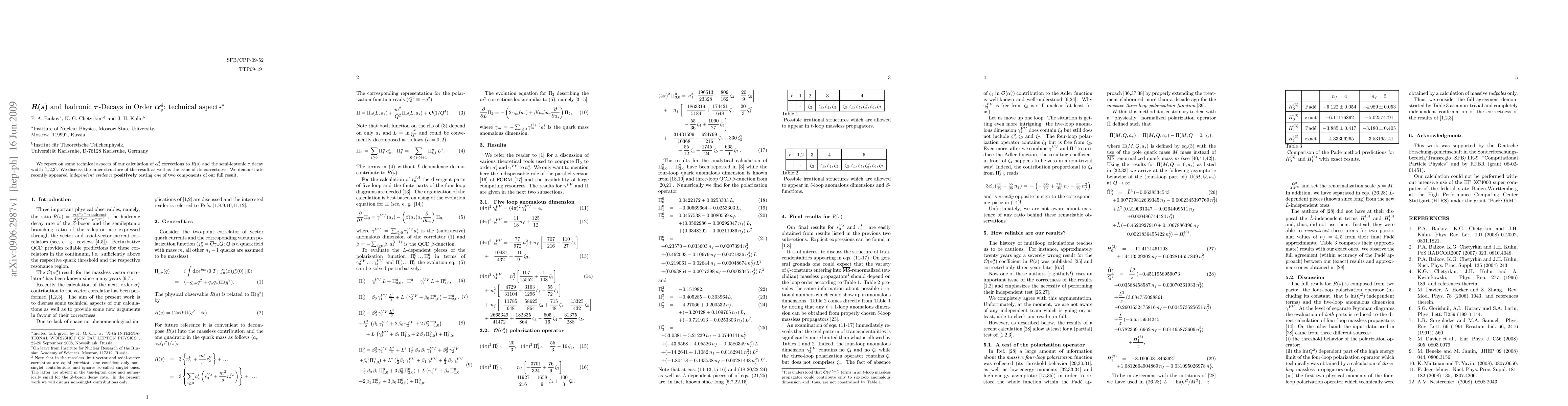Researchers report on technical aspects of calculating corrections to R(s) and tau decay widths, highlighting independent evidence supporting one component of the full result.