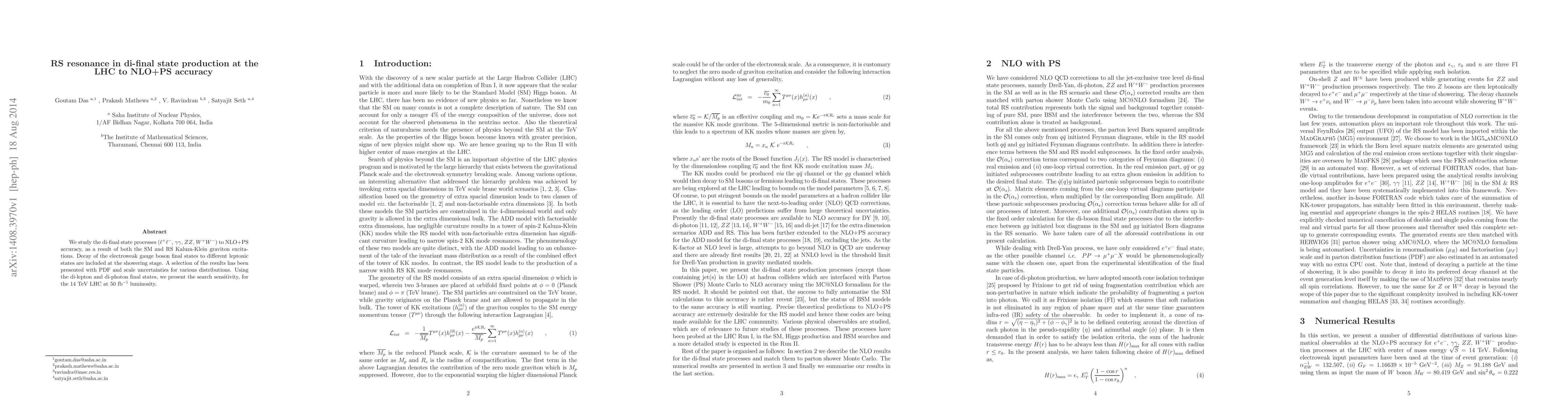 Researchers studied di-final state processes at the LHC to NLO+PS accuracy in both Standard Model (SM) and Randall-Sundrum (RS) Kaluza-Klein graviton scenarios, finding improved search sensitivity for 14 TeV LHC.