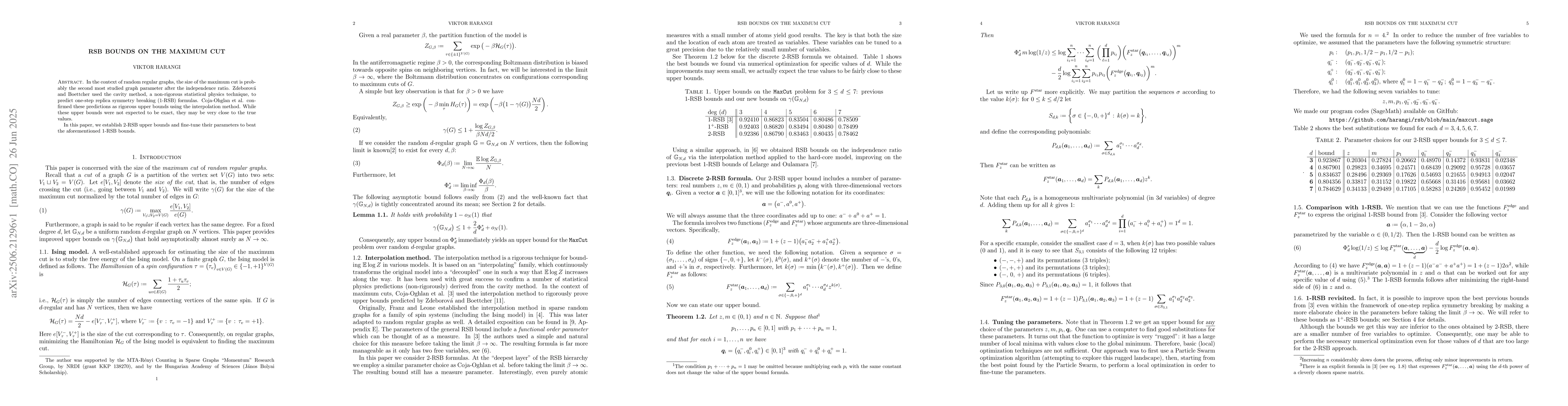 The paper introduces a rigorous 2-RSB framework for bounding the maximum cut, including explicit formulas and parameter optimization strategies, refining previous 1-RSB results.
