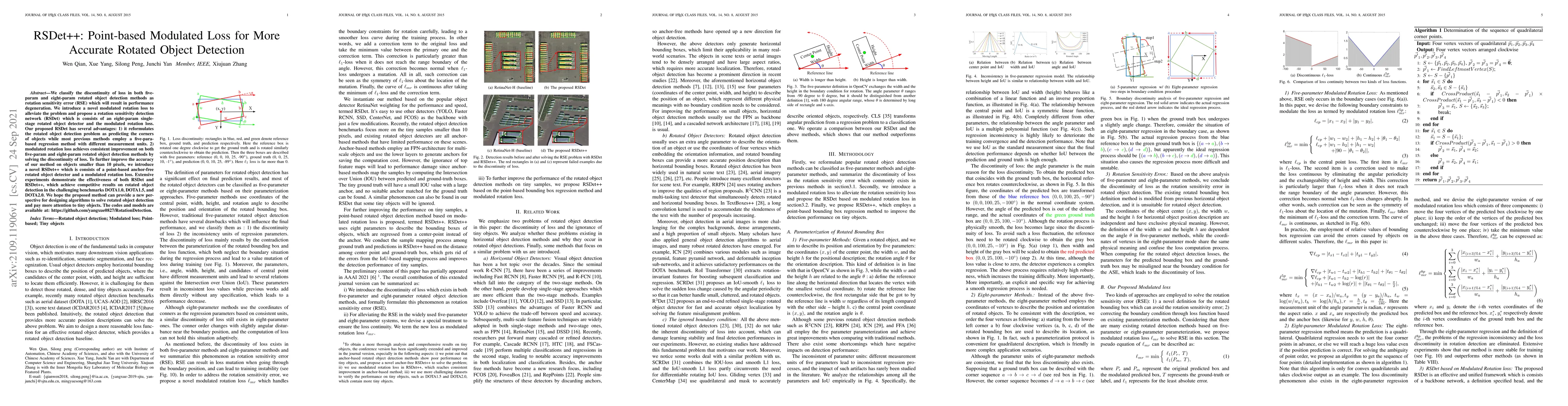 This paper introduces RSDet++, a novel method for accurate rotated object detection using a point-based modulated loss to address rotation sensitivity error. It proposes an eight-param single-stage detector with a modulated rotation loss, achieving better performance on small objects compared to traditional five-param methods.