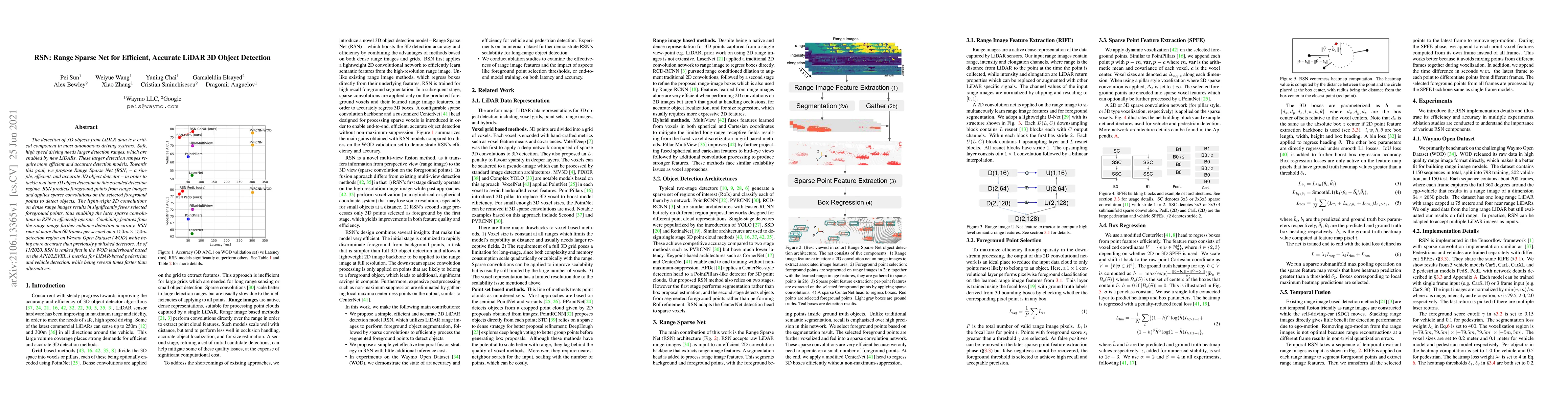 The Range Sparse Net (RSN) is an efficient and accurate 3D object detector designed for real-time LiDAR data processing in autonomous driving, achieving high speeds and accuracy over large detection ranges. RSN leverages sparse convolutions on selected foreground points from range images to significantly enhance efficiency and accuracy.