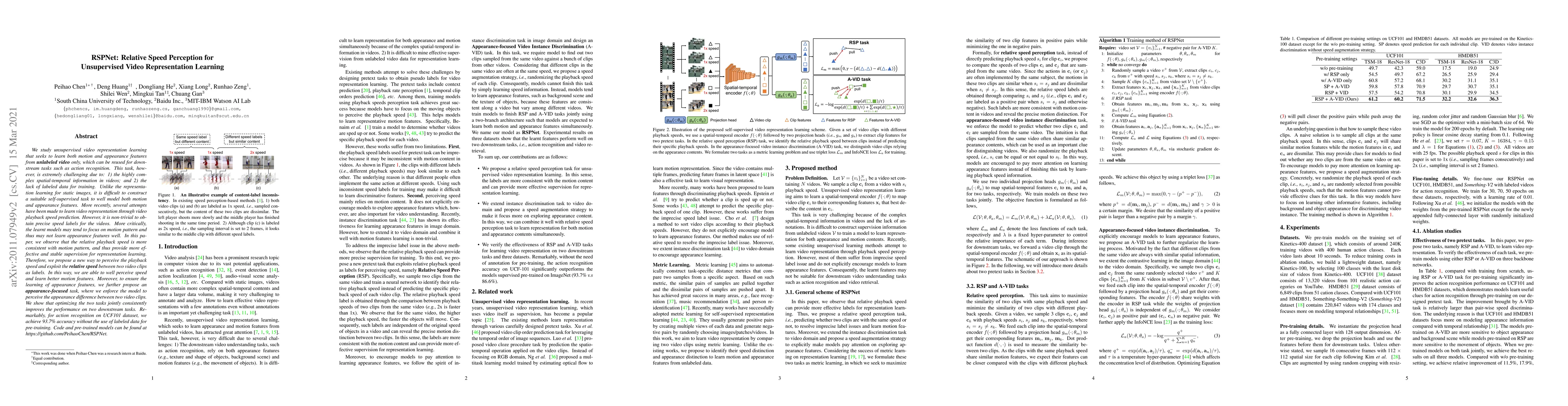 RSPNet introduces a novel unsupervised video representation learning method using relative speed perception to model both motion and appearance features from unlabeled videos. By leveraging relative playback speed and appearance difference tasks, it achieves superior performance on action recognition and video retrieval, outperforming ImageNet-supervised models.