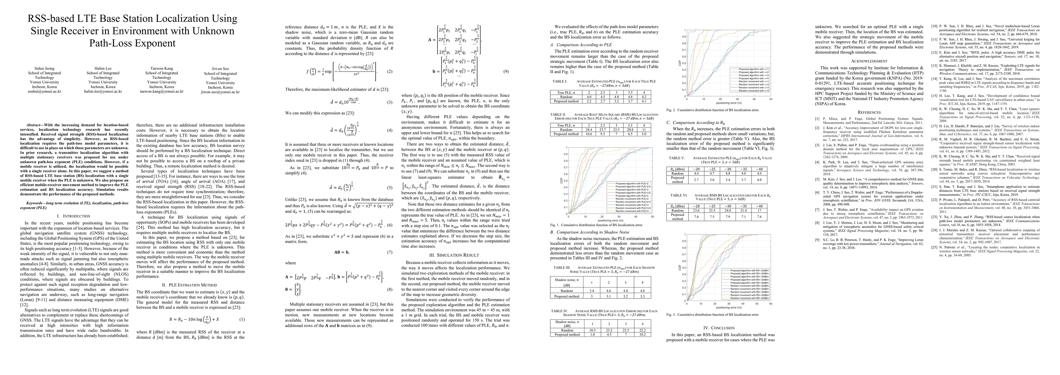 This paper proposes an RSS-based LTE base station localization method using a single mobile receiver in environments with unknown path-loss exponent. It introduces an efficient movement strategy for the receiver to enhance path-loss exponent estimation and base station localization accuracy, validated through simulation.