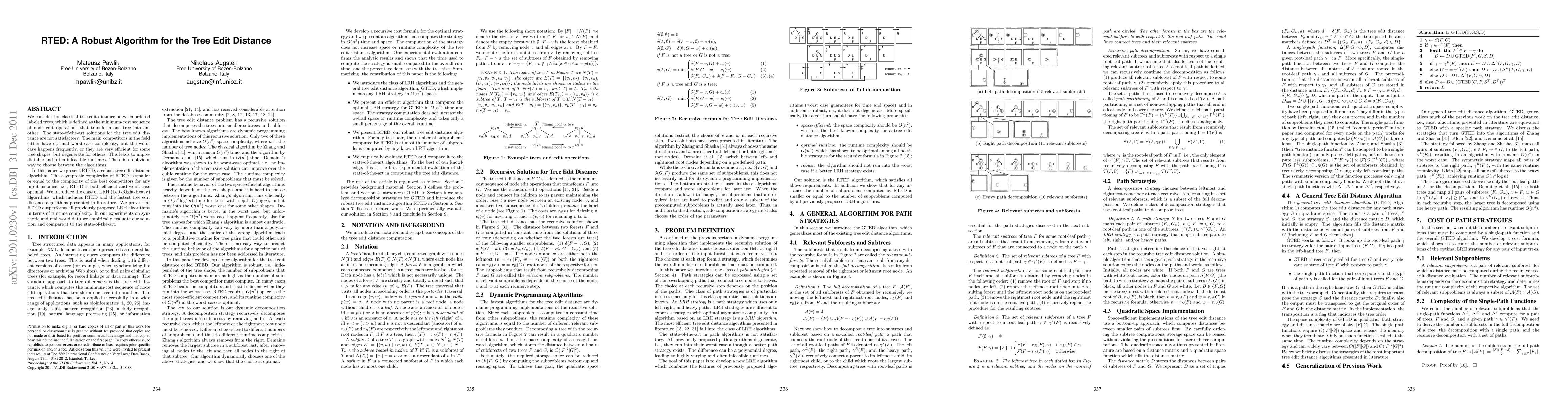 This paper introduces RTED, a robust algorithm for computing the tree edit distance between ordered labeled trees, which aims to address the inefficiencies of existing solutions. RTED is shown to be both efficient and worst-case optimal, outperforming previous LRH algorithms in runtime complexity, as demonstrated through experiments on both synthetic and real-world data.