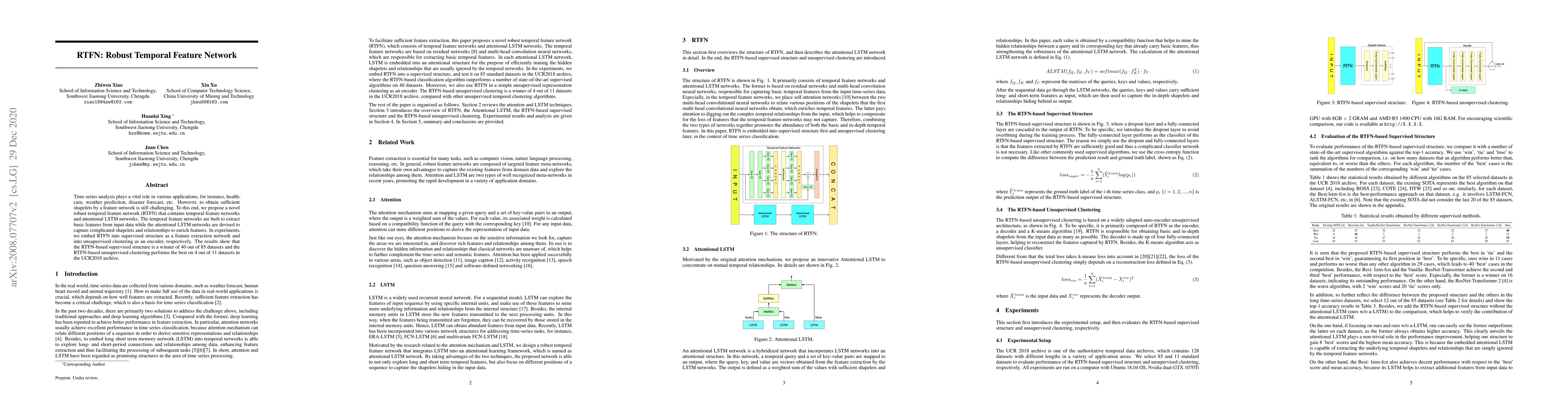 Researchers propose RTFN, a novel feature network that combines temporal feature networks and attentional LSTM networks to extract robust features from time series data, achieving success in 40 out of 85 datasets for supervised structure and performing best on 4 out of 11 datasets for unsupervised clustering.
