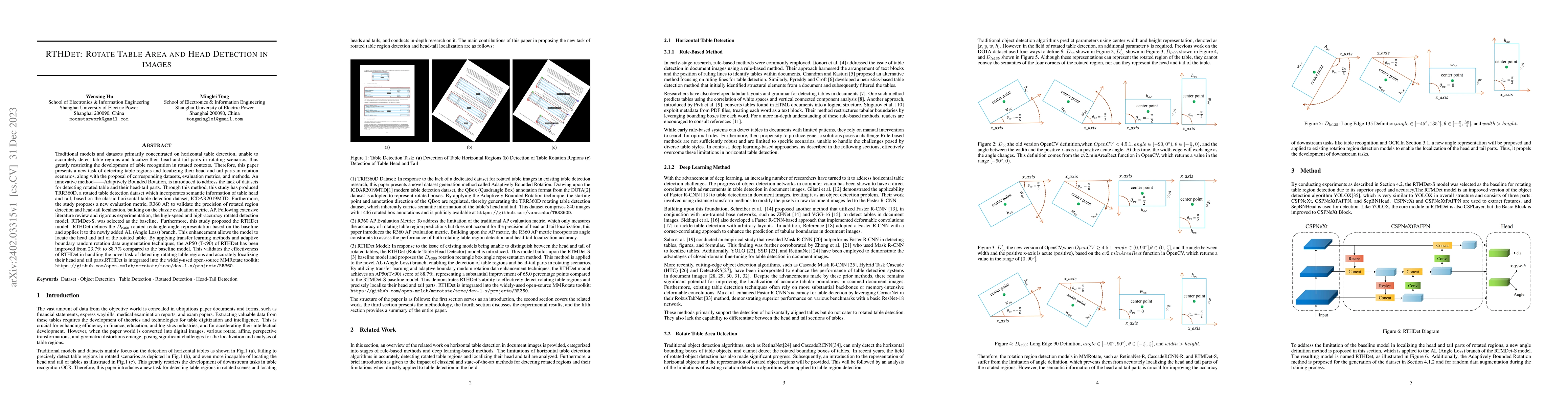 This paper introduces RTHDet, a method for detecting and localizing table regions and head-tail parts in rotated contexts, addressing the limitations of traditional models. The proposed 'Adaptively Bounded Rotation' method, combined with a new dataset TRR360D and evaluation metric R360 AP, significantly improves detection accuracy, raising AP50 from 23.7% to 88.7% compared to the baseline.
