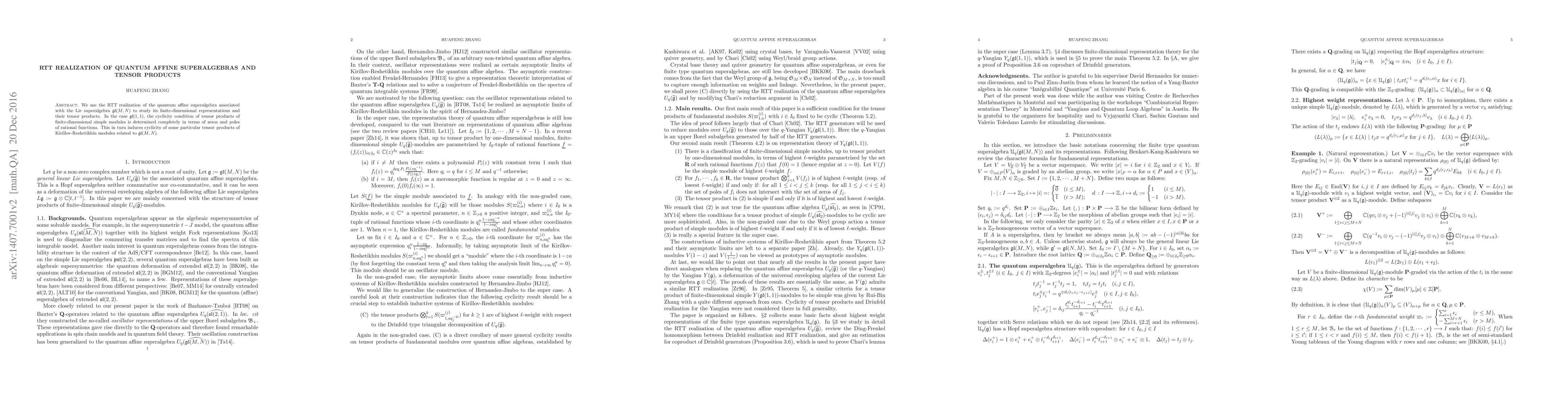 We use the RTT realization of the quantum affine superalgebra associated with the Lie superalgebra $\mathfrak{gl}(M,N)$ to study its finite-dimensional representations and their tensor products. In the case $\mathfrak{gl}(1,1)$, the cyclicity condition of tensor products of finite-dimensional simple modules is determined completely in terms of zeros and poles of rational functions. This in turn induces cyclicity of some particular tensor products of Kirillov-Reshetikhin modules related to $\mathfrak{gl}(M,N)$.