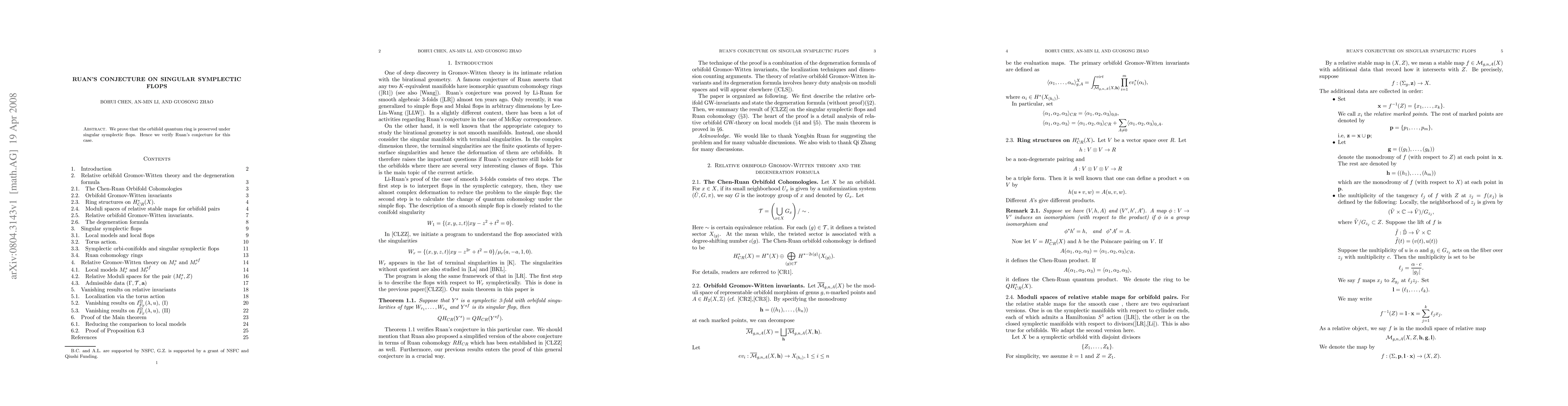 Ruan's conjecture on singular symplectic flops is verified by proving that the orbifold quantum ring remains unchanged under these transformations, confirming the preservation of the quantum ring in this context.