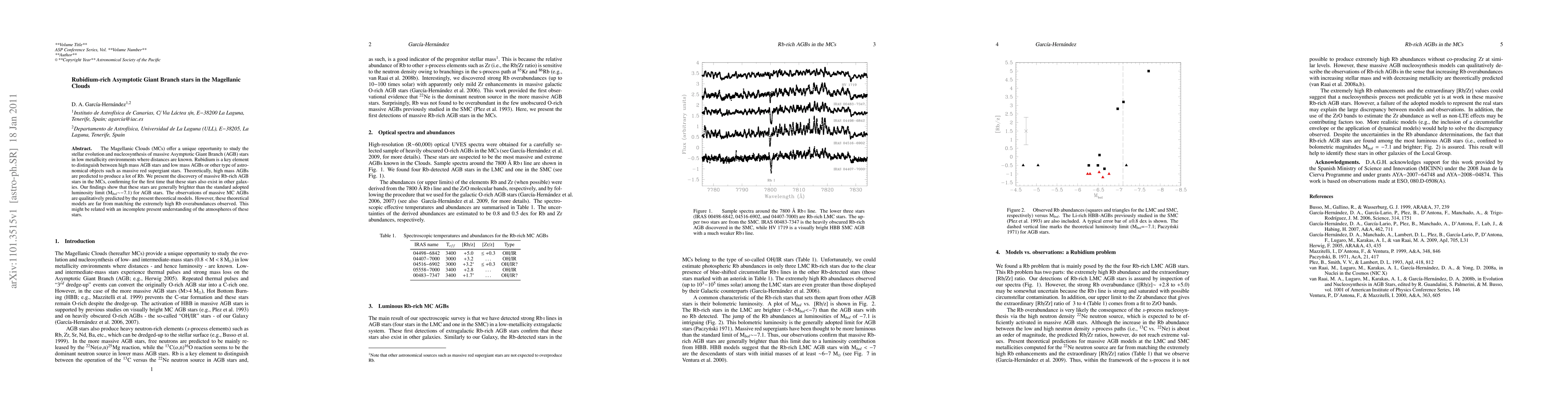 This paper reports the discovery of rubidium-rich Asymptotic Giant Branch (AGB) stars in the Magellanic Clouds, confirming their existence in other galaxies and showing they are brighter than typical AGB stars. While theoretical models predict the presence of such stars, they do not fully account for the observed high rubidium overabundances, suggesting gaps in our understanding of these stars' atmospheres.