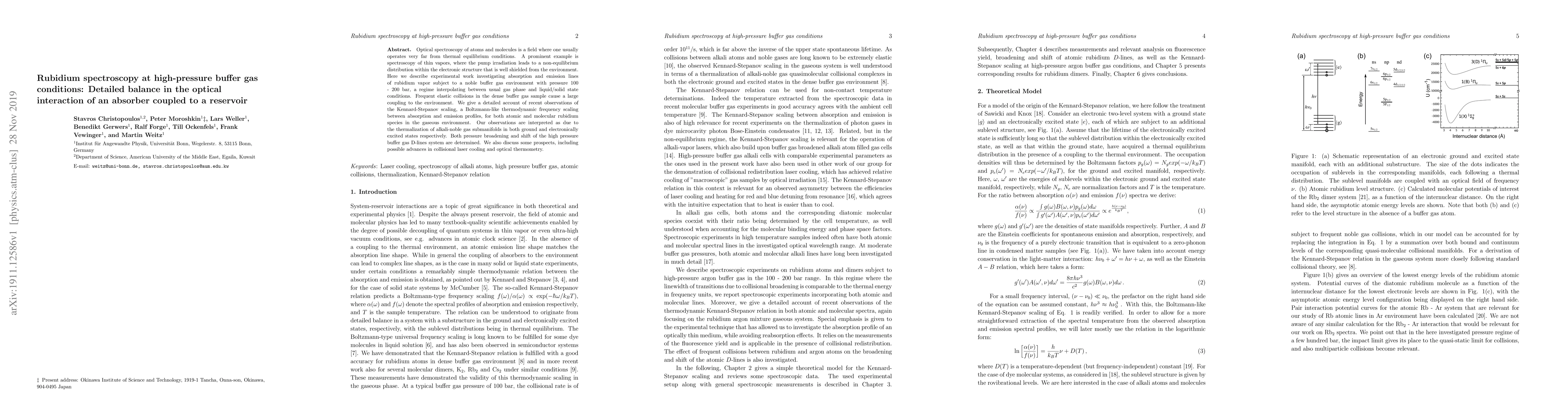 This research investigates the detailed balance in optical spectroscopy of rubidium vapor under high-pressure noble gas conditions, observing significant coupling to the environment due to frequent elastic collisions. The study reports on the Kennard Stepanov scaling and the thermalization effects in both ground and excited states, along with pressure broadening and shifts of the D lines.