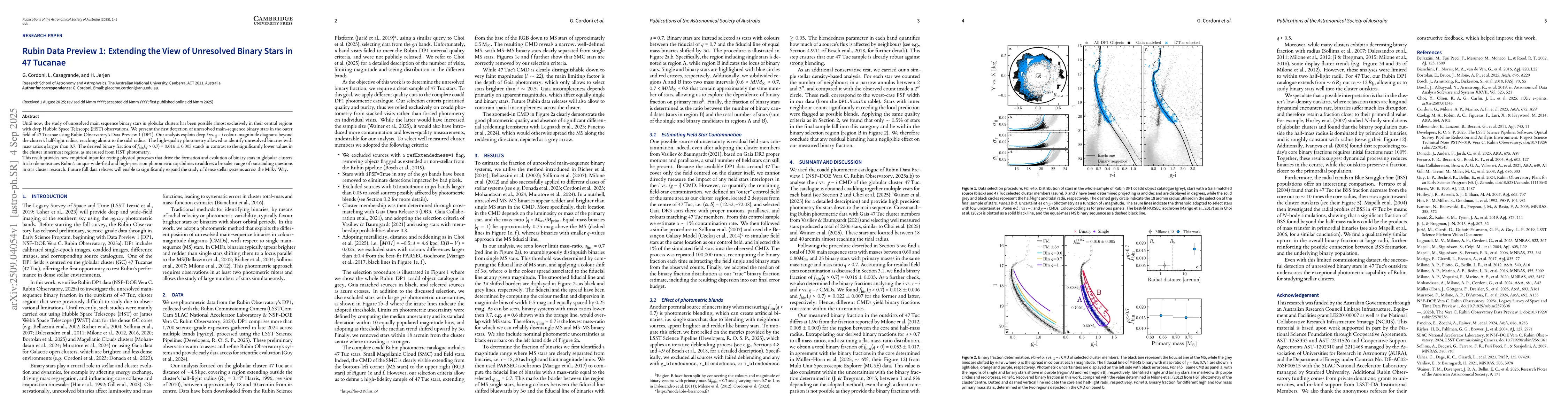 Until now, the study of unresolved main sequence binary stars in globular clusters has been possible almost exclusively in their central regions with deep Hubble Space Telescope (HST) observations. We present the first detection of unresolved main-sequence binary stars in the outer field of 47 Tucanae using Rubin Observatory's Data Preview 1 (DP1). Our analysis exploits deep $i$ vs. $g-i$ colour-magnitude diagrams beyond the cluster's half-light radius, reaching almost to the tidal radius. The high-quality photometry allowed to identify unresolved binaries with mass ratios $q$ larger than 0.7. The derived binary fraction of $f_\mathrm{bin}(q>0.7) = 0.016 \pm 0.005$ stands in contrast to the significantly lower values in the cluster innermost regions, as measured from HST photometry. This result provides new empirical input for testing physical processes that drive the formation and evolution of binary stars in globular clusters. It also demonstrates Rubin's unique wide-field and high-precision photometric capabilities to address a broader range of outstanding questions in star cluster research. Future full data releases will enable to significantly expand the study of dense stellar systems across the Milky Way.