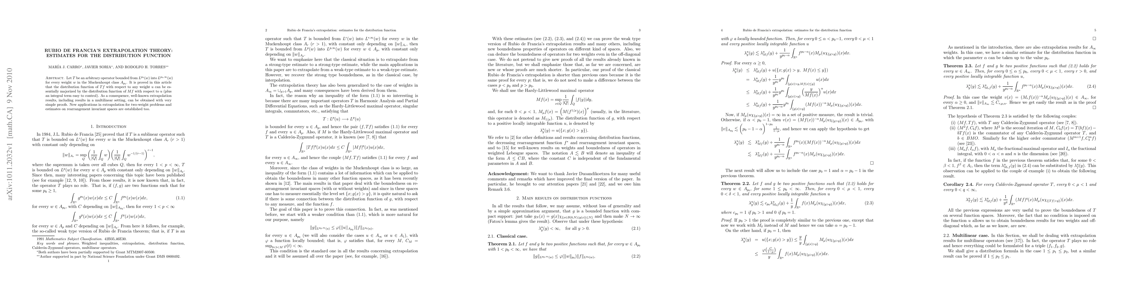 Let $T$ be an arbitrary operator bounded from $L^{p_0}(w)$ into $L^{p_0, \infty}(w)$ for every weight $w$ in the Muckenhoupt class $A_{p_0}$. It is proved in this article that the distribution function of $Tf$ with respect to any weight $u$ can be essentially majorized by the distribution function of $Mf$ with respect to $u$ (plus an integral term easy to control). As a consequence, well-known extrapolation results, including results in a multilinear setting, can be obtained with very simple proofs. New applications in extrapolation for two-weight problems and estimates on rearrangement invariant spaces are established too.