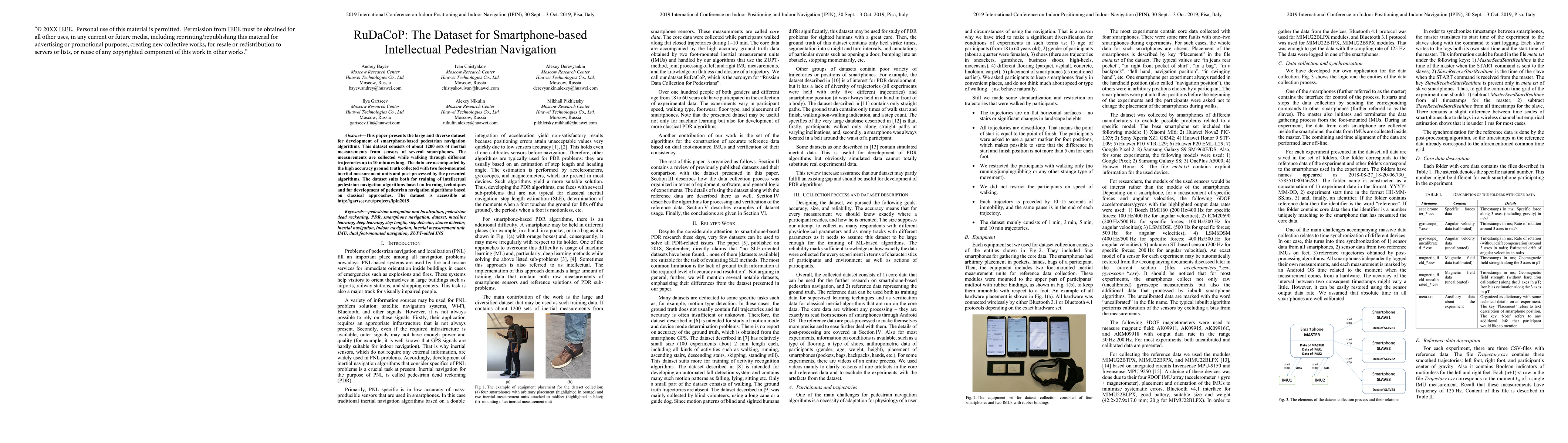 This paper introduces RuDaCoP, a comprehensive dataset for developing smartphone-based pedestrian navigation algorithms, featuring 1200 sets of inertial measurements from various smartphones. The dataset includes high-accuracy ground truth data collected via foot-mounted units and is available for both machine learning and classical navigation algorithm development.