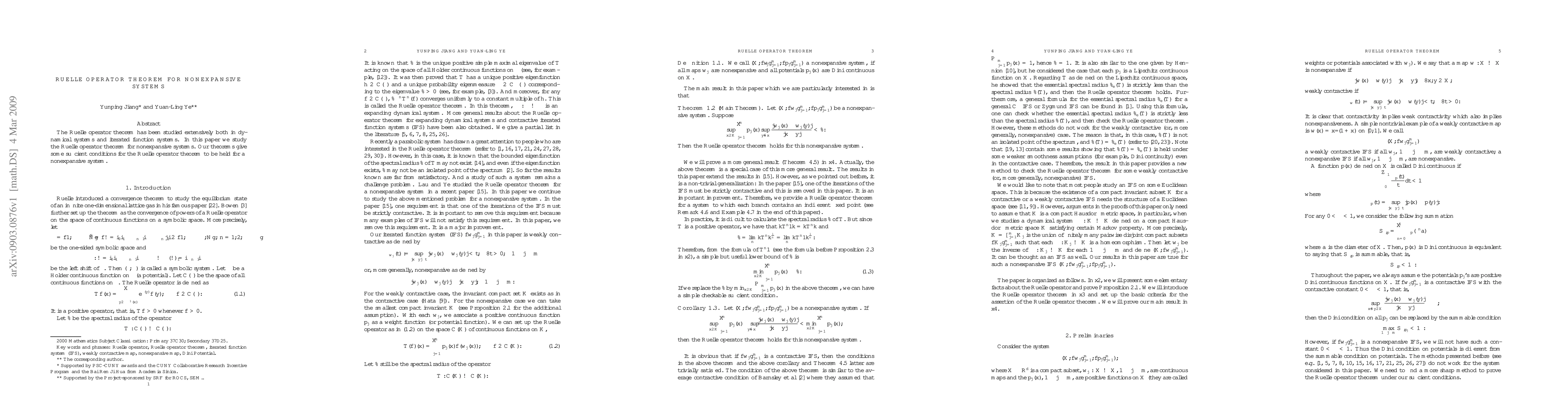 The Ruelle operator theorem has been studied extensively both in dynamical systems and iterated function systems. In this paper we study the Ruelle operator theorem for nonexpansive systems. Our theorems give some sufficient conditions for the Ruelle operator theorem to be held for a nonexpansive system.