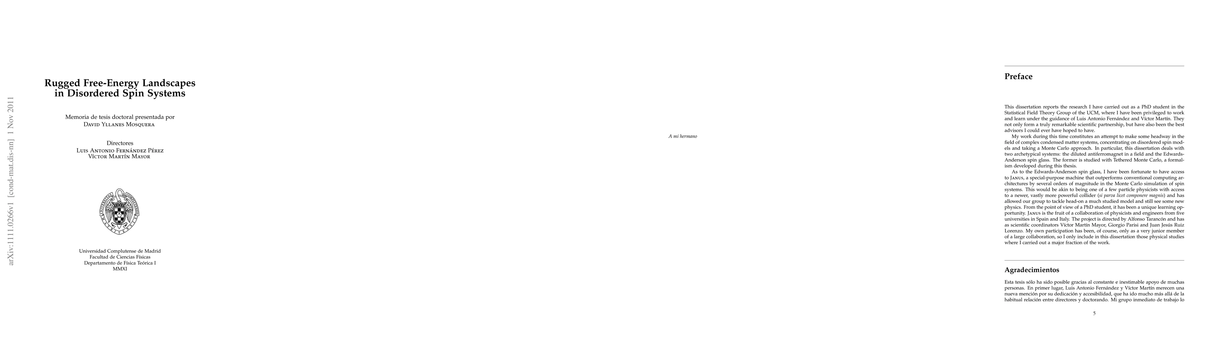 This research explores disordered spin systems, focusing on the Edwards-Anderson spin glass and the Diluted Antiferromagnet in a Field using large-scale Monte Carlo simulations. It establishes a quantitative link between non-equilibrium and equilibrium phases and introduces Tethered Monte Carlo to study rugged free-energy landscapes, providing insights into critical behavior.