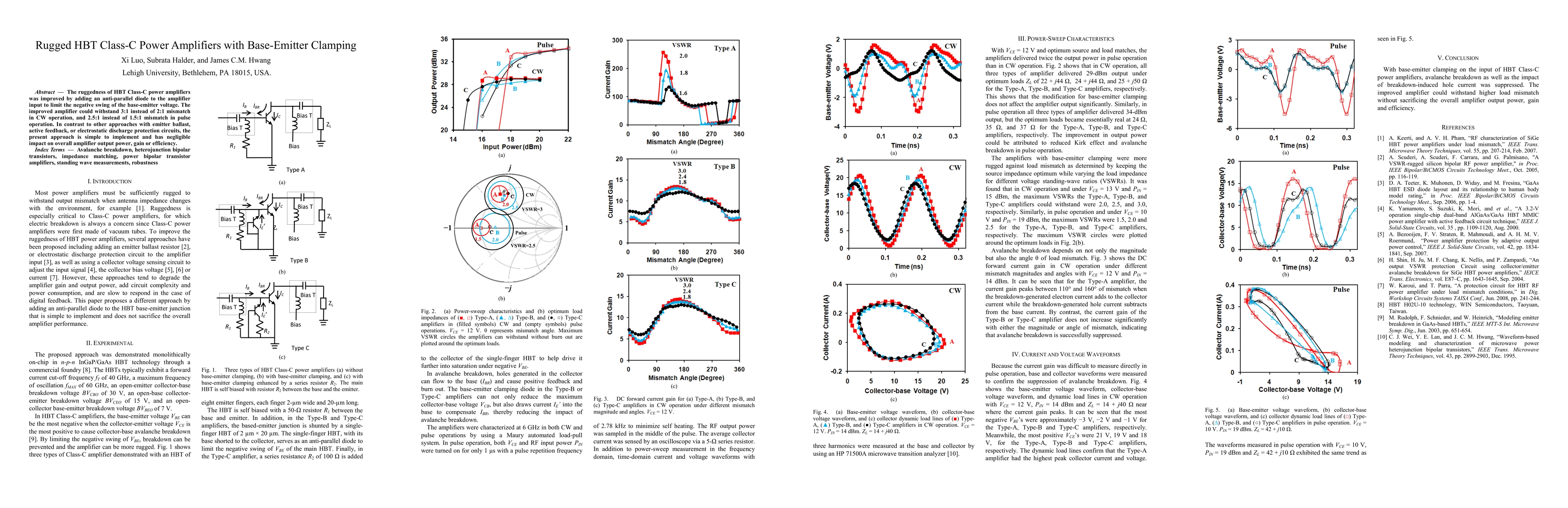 Researchers improved the ruggedness of HBT Class-C power amplifiers by adding an anti-parallel diode to limit negative base-emitter voltage swings, enabling higher mismatch tolerance in both continuous wave and pulse operations.