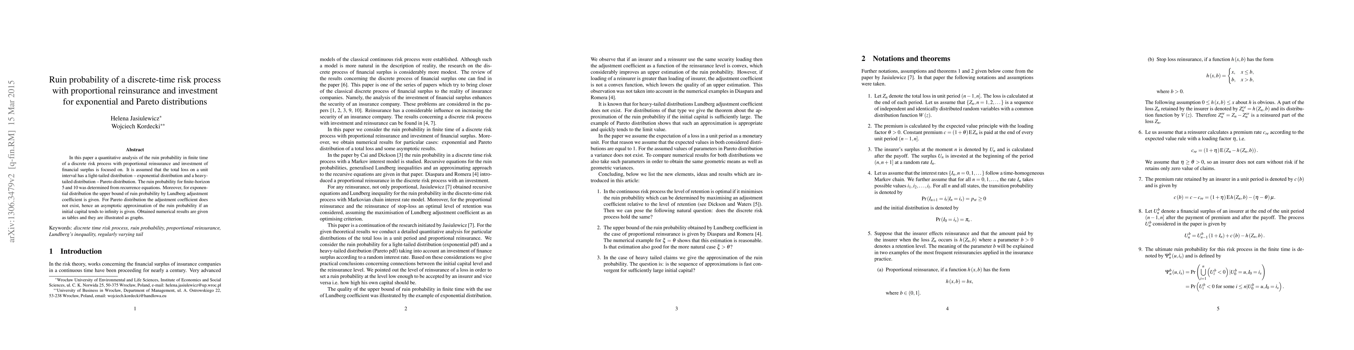 This paper analyzes the ruin probability for a discrete-time risk process with proportional reinsurance and investment under exponential and Pareto loss distributions. It provides recurrence equations for finite-horizon ruin probabilities and an asymptotic approximation for the Pareto case, along with numerical results presented in tables and graphs.