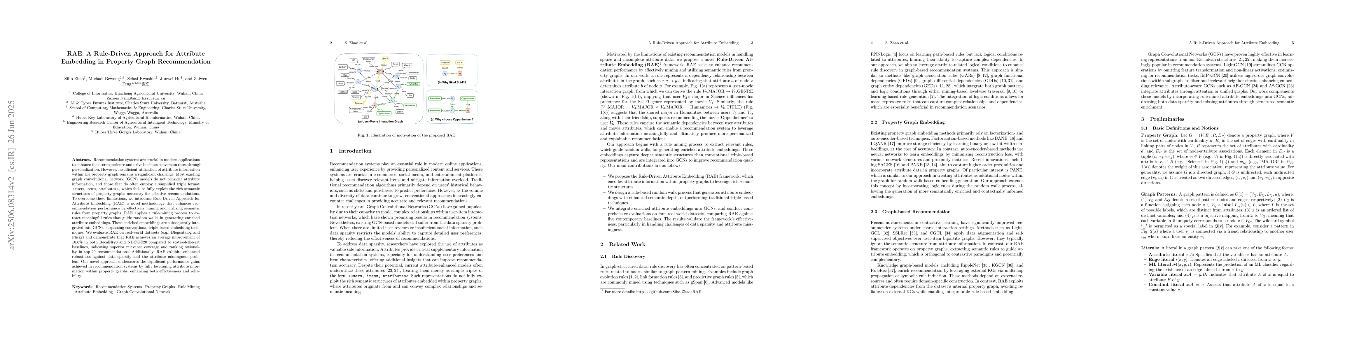 A new method called RAE (Rule-Assisted Approach for Attribute Embedding) improves recommendation systems by using semantic rules from property graphs to guide attribute embedding, outperforming state-of-the-art baselines on average by 10.6% in recall and NDCG.