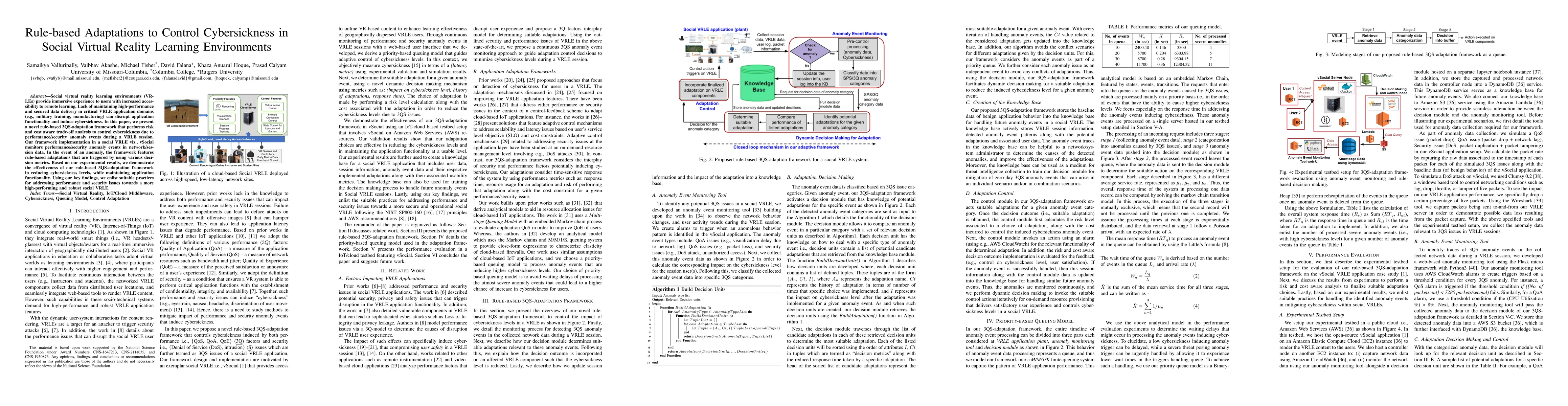 This paper introduces a rule-based 3QS-adaptation framework to mitigate cybersickness in social virtual reality learning environments by analyzing performance and security anomalies. Experimental results show that the framework effectively reduces cybersickness while maintaining application functionality.