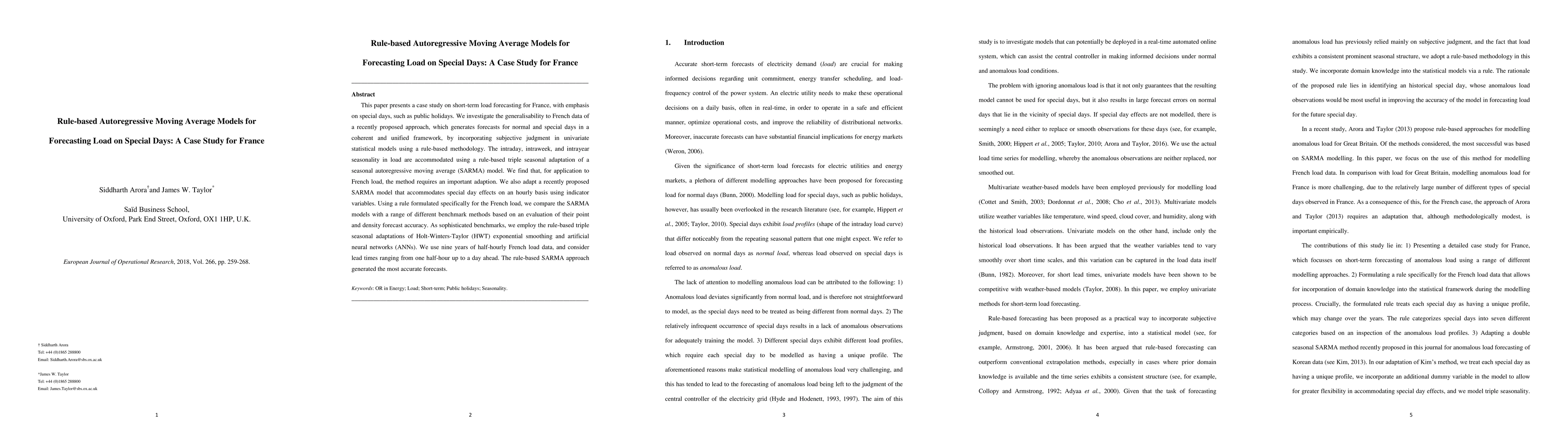 This paper presents a rule-based approach for short-term load forecasting in France, especially on special days like holidays, using a triple seasonal adaptation of SARMA models. The method outperformed benchmarks, including HWT and ANNs, in forecasting accuracy over nine years of data.