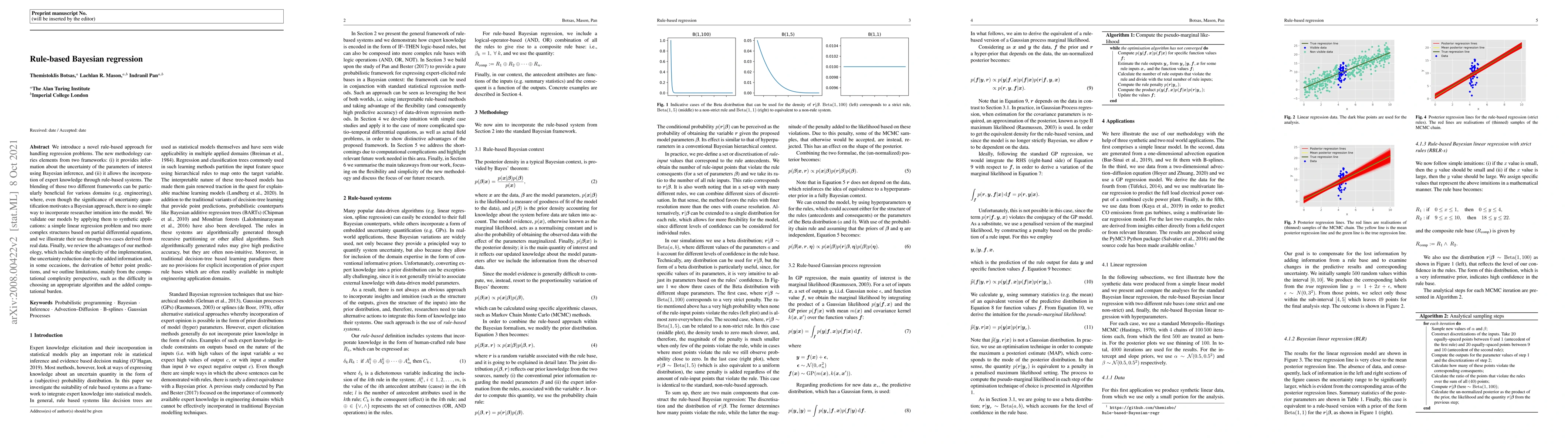 We introduce a novel rule-based approach for handling regression problems. The new methodology carries elements from two frameworks: (i) it provides information about the uncertainty of the parameters of interest using Bayesian inference, and (ii) it allows the incorporation of expert knowledge through rule-based systems. The blending of those two different frameworks can be particularly beneficial for various domains (e.g. engineering), where, even though the significance of uncertainty quantification motivates a Bayesian approach, there is no simple way to incorporate researcher intuition into the model. We validate our models by applying them to synthetic applications: a simple linear regression problem and two more complex structures based on partial differential equations. Finally, we review the advantages of our methodology, which include the simplicity of the implementation, the uncertainty reduction due to the added information and, in some occasions, the derivation of better point predictions, and we address limitations, mainly from the computational complexity perspective, such as the difficulty in choosing an appropriate algorithm and the added computational burden.