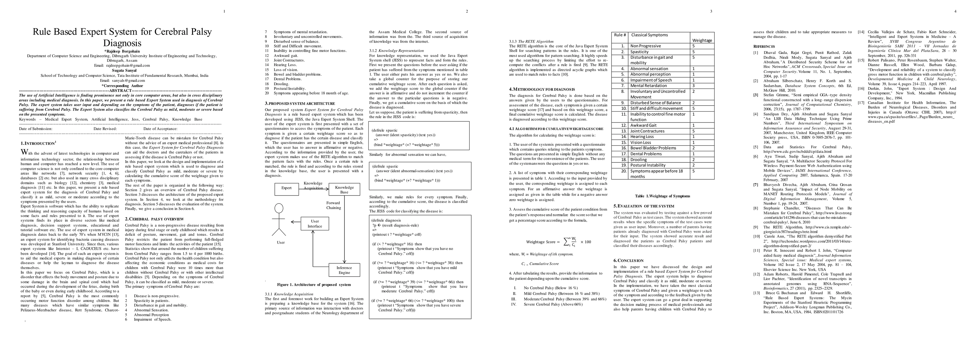 This paper introduces a rule-based Expert System leveraging Artificial Intelligence for diagnosing Cerebral Palsy, classifying it as mild, moderate, or severe based on patient symptoms. The system aims to assist medical professionals in cross-disciplinary medical diagnosis.