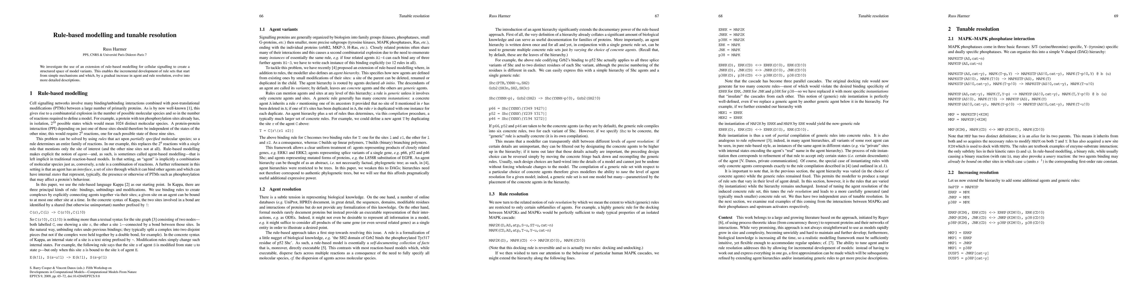 This paper explores an extended rule-based modelling approach for cellular signalling, allowing the incremental development of complex models from simple mechanisms through gradual increases in agent and rule resolution. The method facilitates the evolution of model variants with tunable resolution.