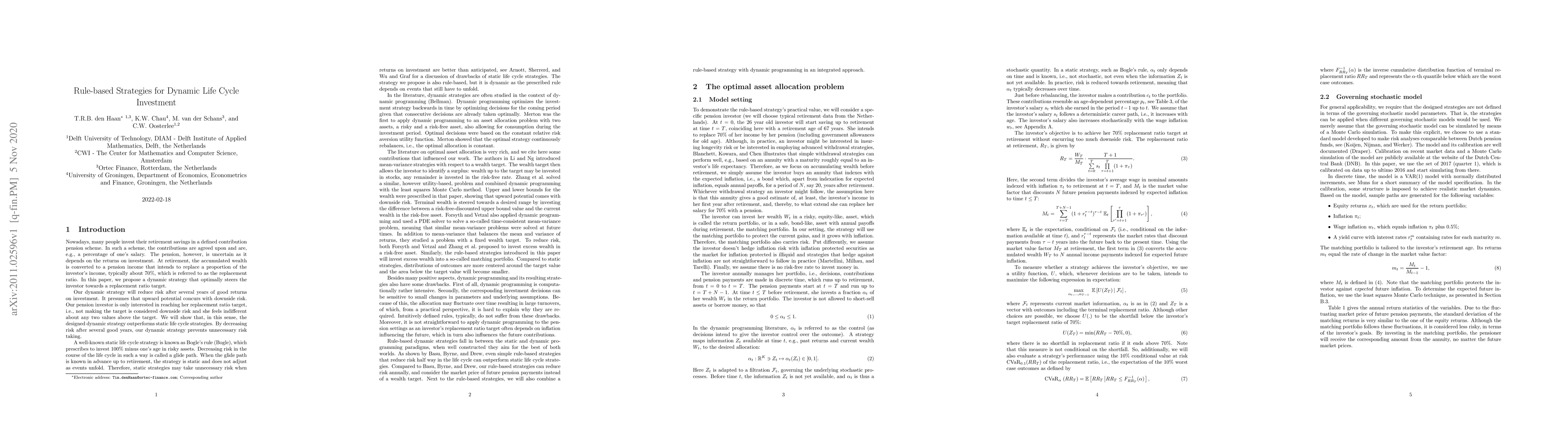 This paper explores rule-based investment strategies for dynamic life cycle investment in defined contribution pension schemes, finding they outperform static strategies by achieving target retirement income more reliably. The rule-based approach offers stable asset allocation and fewer transactions compared to dynamic programming, while a matching portfolio is used to avoid unnecessary risk.