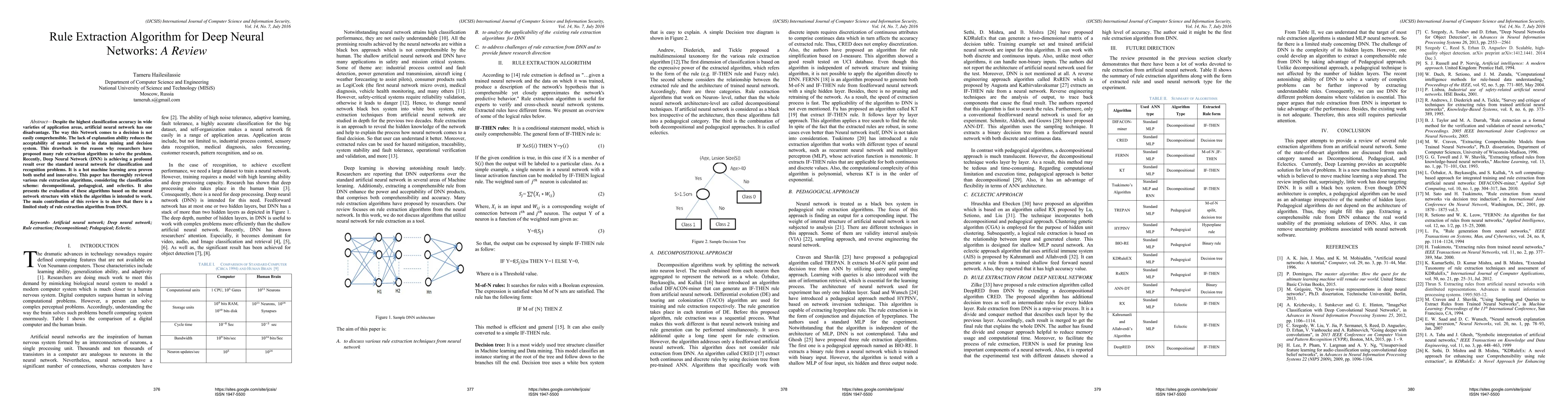 This paper reviews various rule extraction algorithms for Deep Neural Networks (DNNs) to enhance their comprehensibility. It categorizes these algorithms into decompositional, pedagogical, and eclectics, and evaluates their effectiveness based on the neural network structure they target, highlighting the scarcity of studies focused on DNNs.