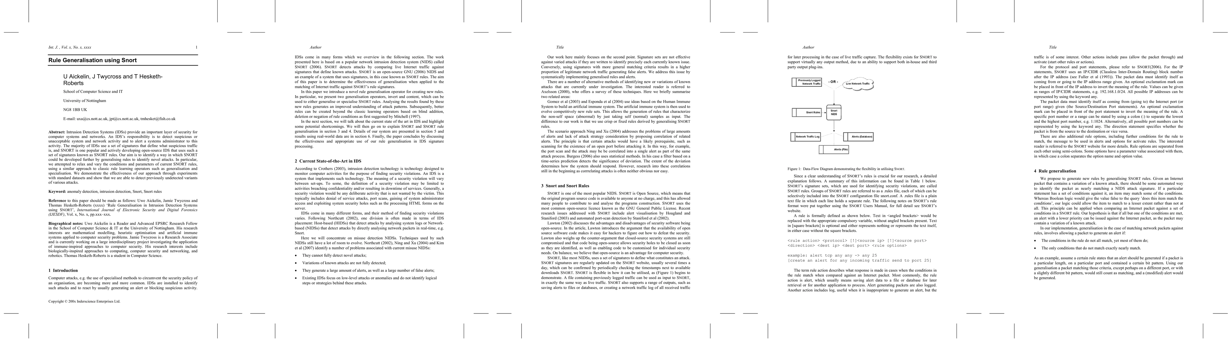 This paper explores enhancing Snort's intrusion detection capabilities by generalising its rules to identify novel attack variants. The authors demonstrate that relaxing rule conditions can effectively detect previously unseen attack types, thus improving the system's adaptability and security.