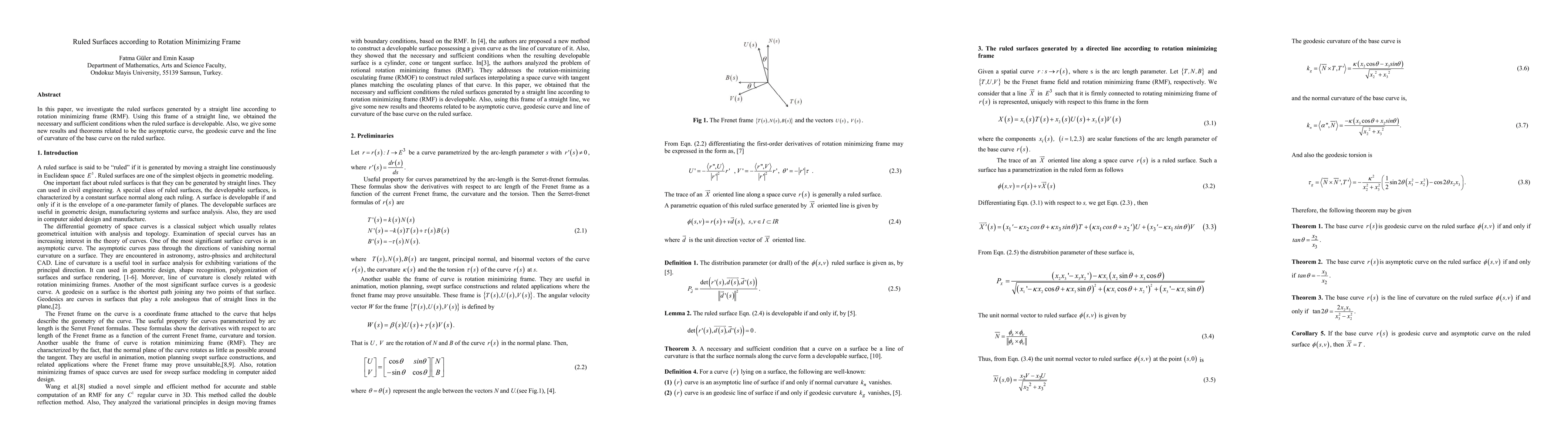 This paper explores ruled surfaces formed by a straight line using a rotation minimizing frame, establishing necessary and sufficient conditions for developability. It also presents new theorems regarding the asymptotic curve, geodesic curve, and line of curvature of the base curve on these surfaces.