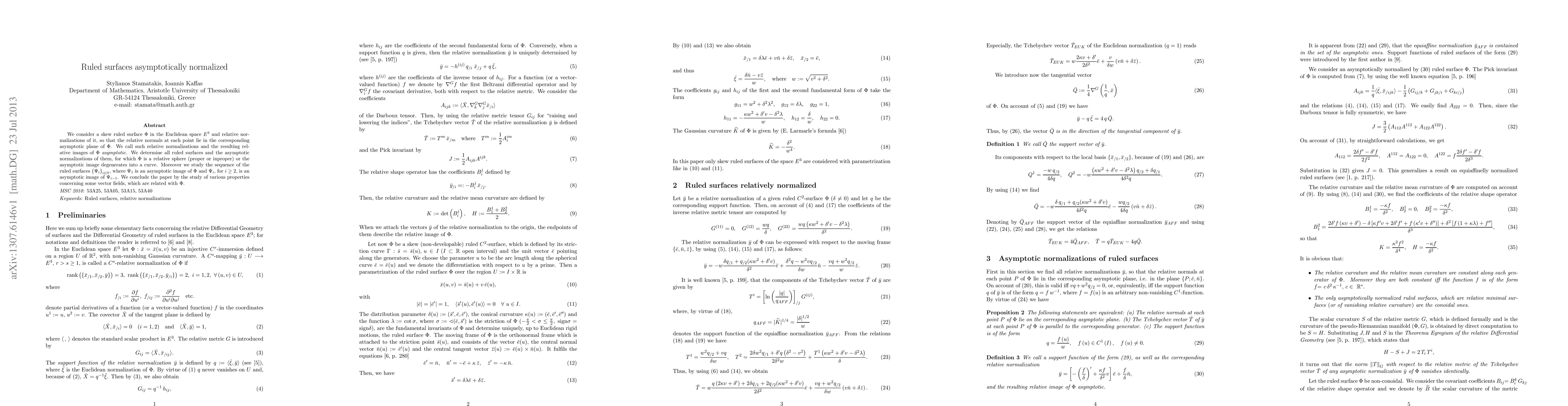 This paper investigates skew ruled surfaces in $E^{3}$, focusing on their asymptotic normalizations where normals align with asymptotic planes. It identifies ruled surfaces and their asymptotic normalizations that transform into relative spheres or degenerate curves, and explores a sequence of asymptotic images. The study concludes with an analysis of vector fields associated with these surfaces.