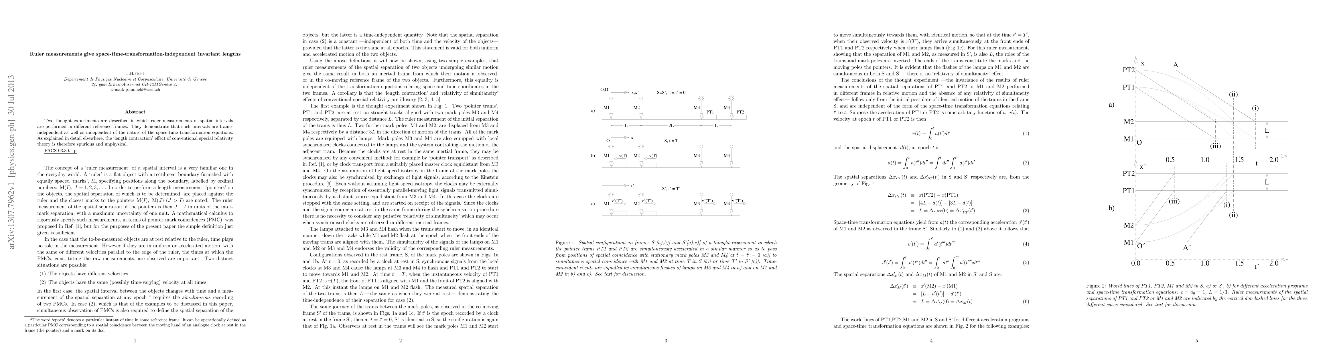 Two thought experiments are described in which ruler measurements of spatial intervals are performed in different reference frames. They demonstrate that such intervals are frame-independent as well as independent of the nature of the space-time transformation equations. As explained in detail elsewhere, the `length contraction' effect of conventional special relativity theory is therefore spurious and unphysical.