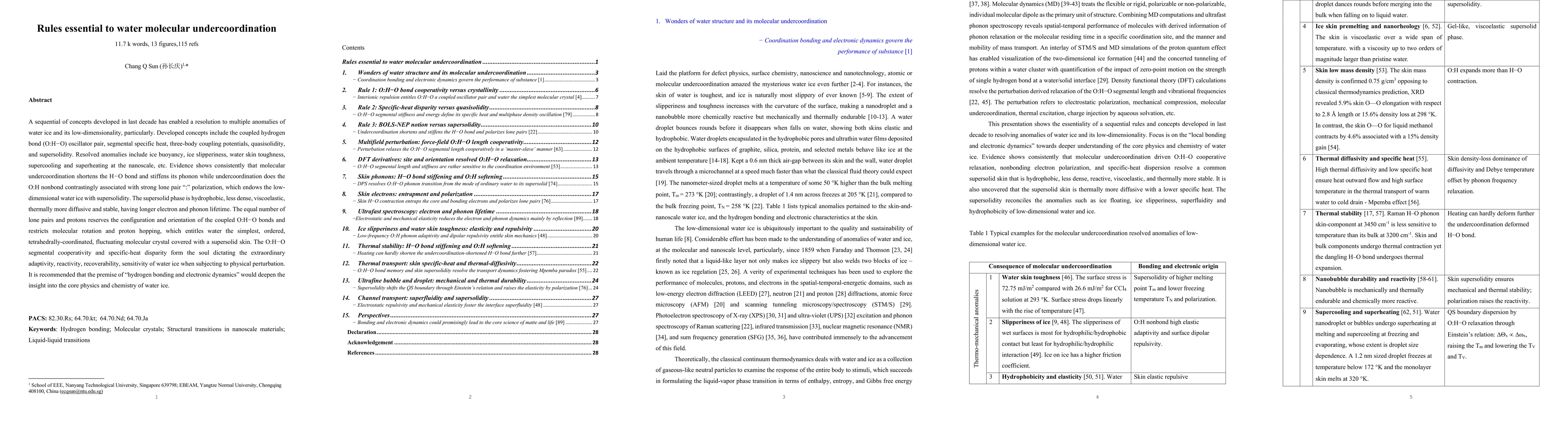 A sequential of concepts developed in last decade has enabled a resolution to multiple anomalies of water ice and its low-dimensionality, particularly. Developed concepts include the coupled hydrogen bond oscillator pair, segmental specific heat, three-body coupling potentials, quasisolidity, and supersolidity. Resolved anomalies include ice buoyancy, ice slipperiness, water skin toughness, supercooling and superheating at the nanoscale, etc. Evidence shows consistently that molecular undercoordination shortens the HO bond and stiffens its phonon while undercoordination does the OH nonbond contrastingly associated with strong lone pair polarization, which endows the low-dimensional water ice with supersolidity. The supersolid phase is hydrophobic, less dense, viscoelastic, thermally more diffusive and stable, having longer electron and phonon lifetime. The equal number of lone pairs and protons reserves the configuration and orientation of the coupled hydrogen bond bonds and restricts molecular rotation and proton hopping, which entitles water the simplest, ordered, tetrahedrally-coordinated, fluctuating molecular crystal covered with a supersolid skin. The hydrogen bond segmental cooperativity and specific-heat disparity form the soul dictating the extraordinary adaptivity, reactivity, recoverability, sensitivity of water ice when subjecting to physical perturbation. It is recommended that the premise of hydrogen bonding and electronic dynamics would deepen the insight into the core physics and chemistry of water ice.