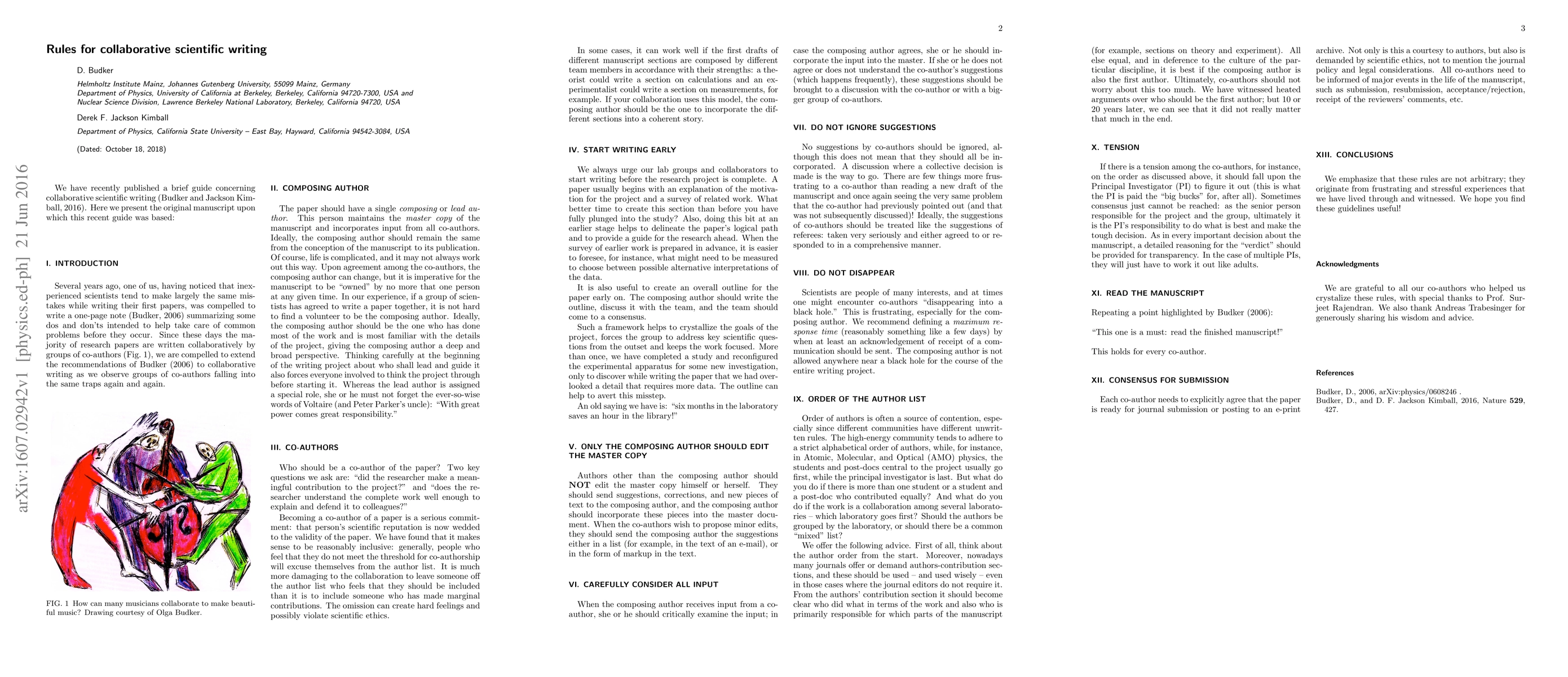 Several years ago, one of us, having noticed that inexperienced scientists tend to make largely the same mistakes while writing their first papers, was compelled to write a one-page note summarizing some dos and don'ts intended to help take care of common problems before they occur. Since these days the majority of research papers are written collaboratively by groups of co-authors, we are compelled to extend these recommendations to collaborative writing as we observe groups of co-authors falling into the same traps again and again.