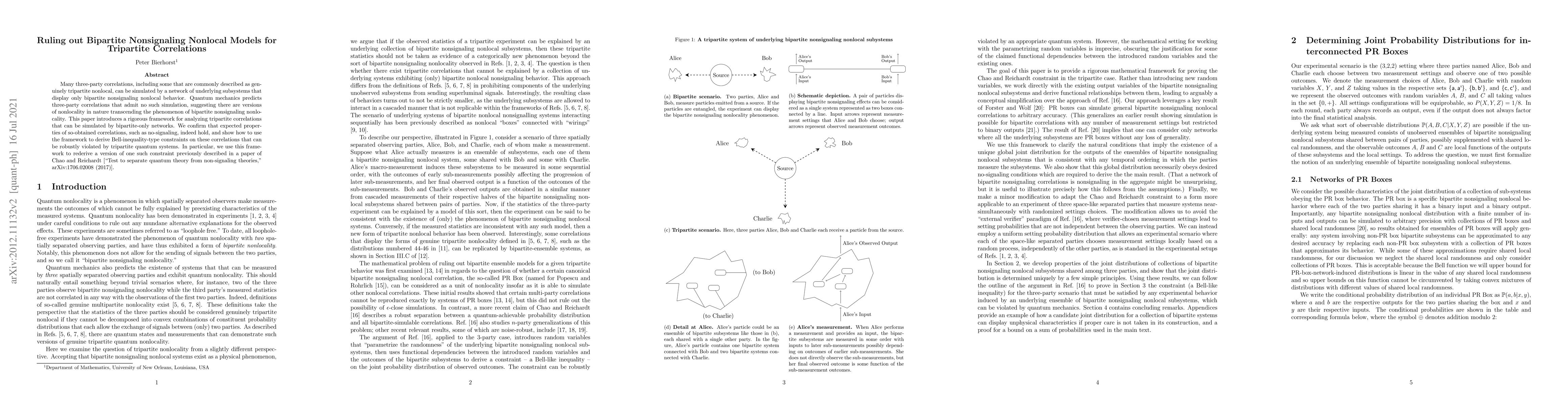 Many three-party correlations, including some that are commonly described as genuinely tripartite nonlocal, can be simulated by a network of underlying subsystems that display only bipartite nonsignaling nonlocal behavior. Quantum mechanics predicts three-party correlations that admit no such simulation, suggesting there are versions of nonlocality in nature transcending the phenomenon of bipartite nonsignaling nonlocality. This paper introduces a rigorous framework for analyzing tripartite correlations that can be simulated by bipartite-only networks. We confirm that expected properties of so-obtained correlations, such as no-signaling, indeed hold, and show how to use the framework to derive Bell-inequality-type constraints on these correlations that can be robustly violated by tripartite quantum systems. In particular, we use this framework to rederive a version of one such constraint previously described in a paper of Chao and Reichardt (arXiv:1706.02008).