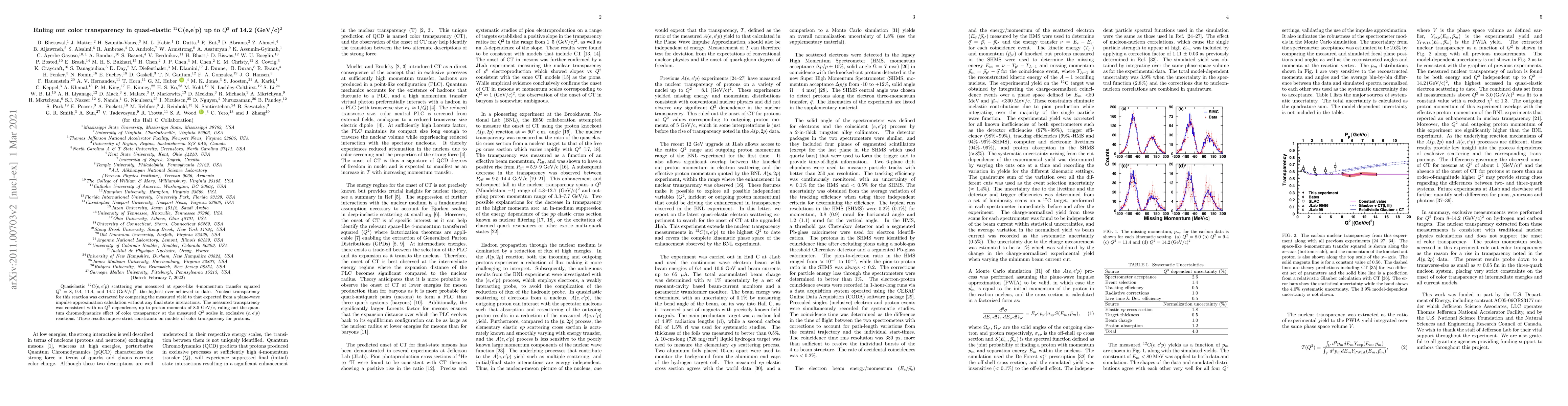 Main technical or theoretical contribution: Experimental measurement of nuclear transparency up to Q2=14.2(GeV/c)2 with high precision